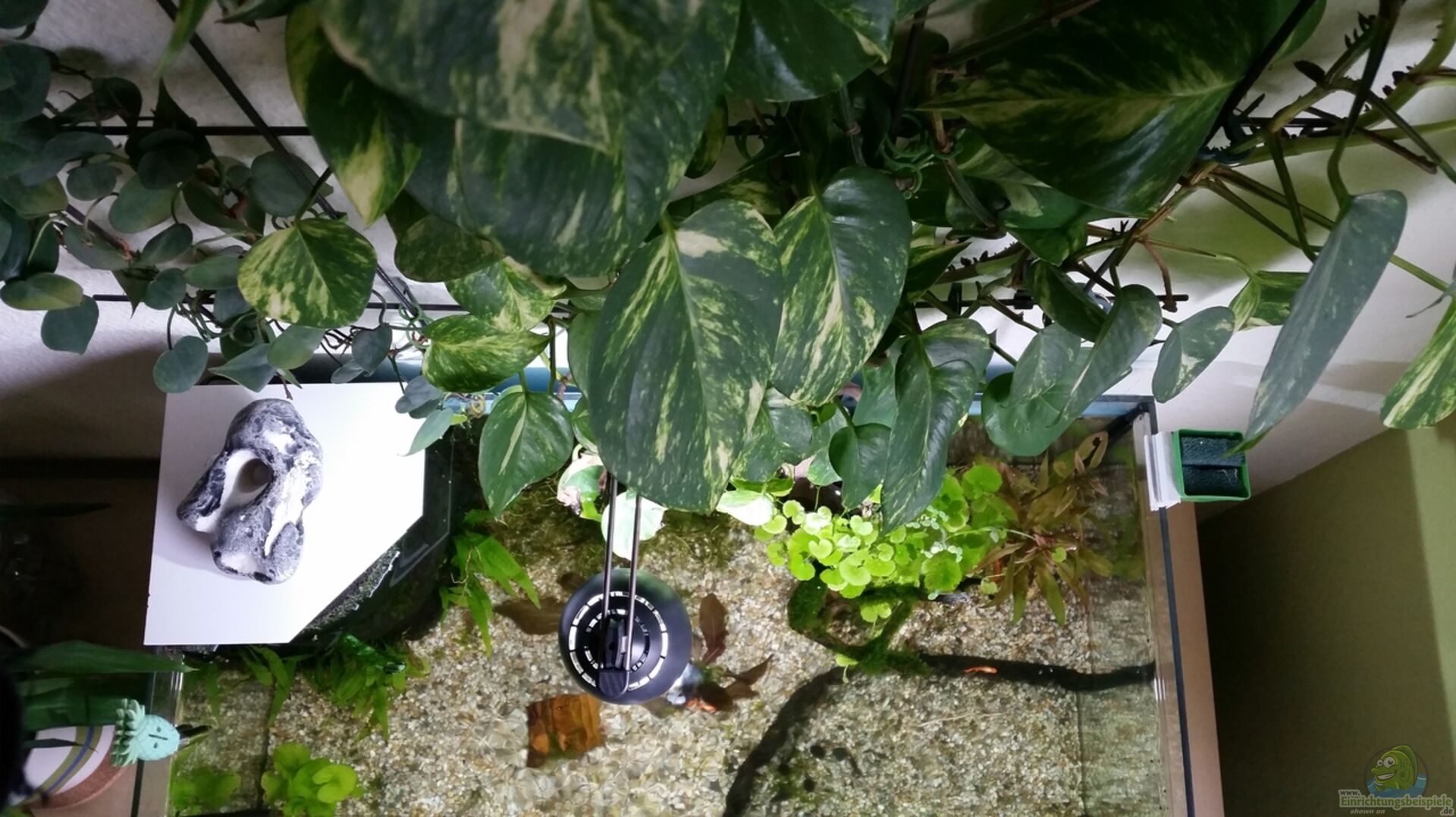 Nachdem das Becken gut ein Jahr ohne Beleuchtung lief, ist jetzt eine kleine Eheim LED Lampe installiert worden. Die ist zwar nur für Nanobecken gedacht, sollte aber plus Tageslicht reichen. Und die Erfahrung zeigt, es reicht!