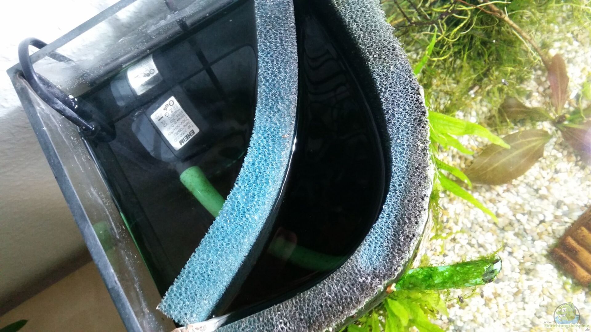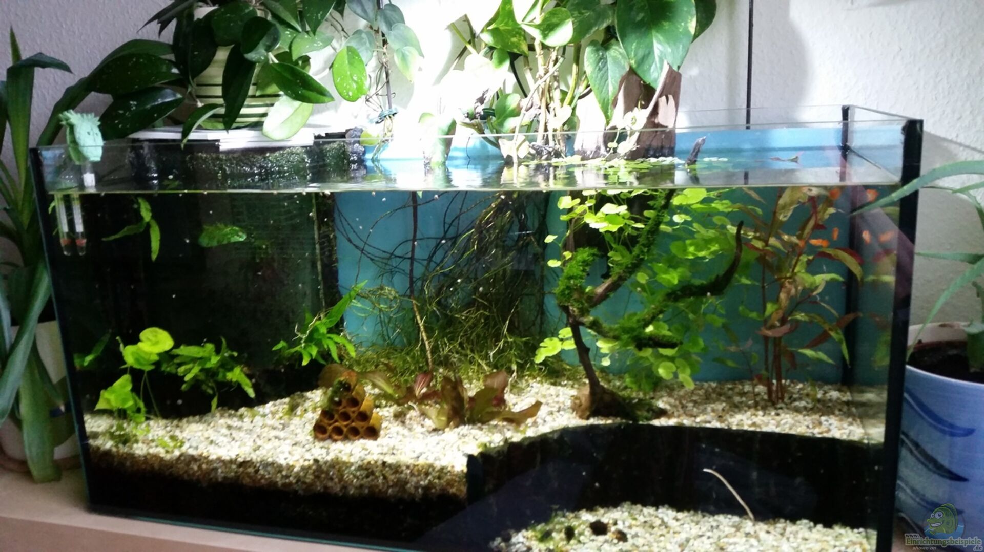 Auf Beleuchtung wollte ich verzichten, weil das "neue" Aquarium neben dem Fenster stand. Ungünstiger Platz ... stimmt ... aber ein anderer war nicht vorhanden. Wenigstens steht es so ideal, dass es nie Sonne abbekommt.