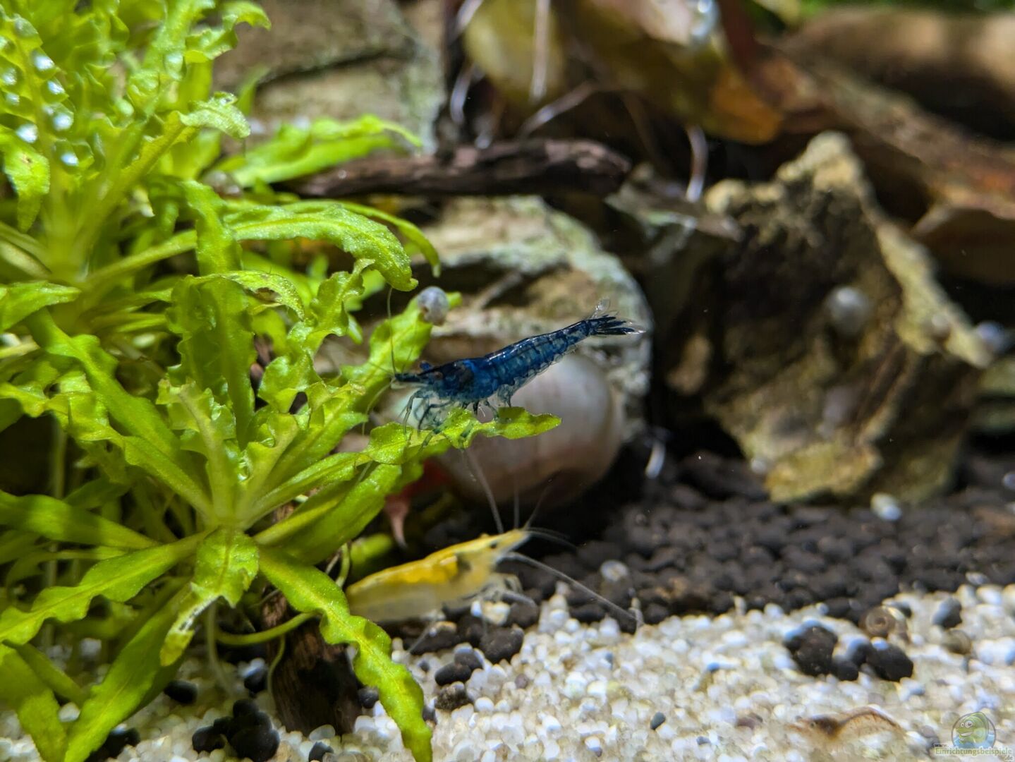 Schon bald gesellten sich die ersten Neocaridina (Red Cherry und Blue Jelly) dazu.