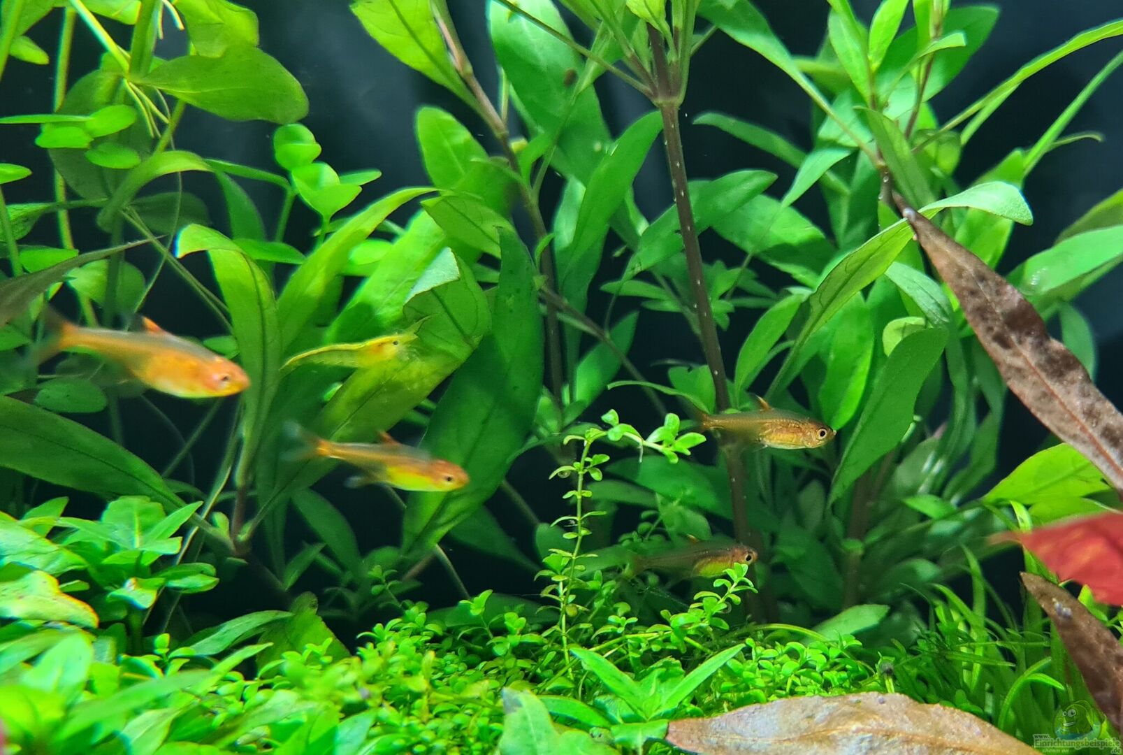 Als letztes zog ein Trupp von 12 Hyphessobrycon amandae (Feuertetra/Funkensalmler) ein und hauchten dem ganzen ordentlich Leben ein.