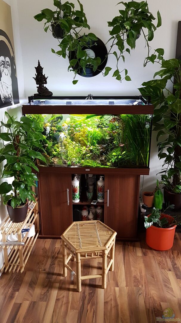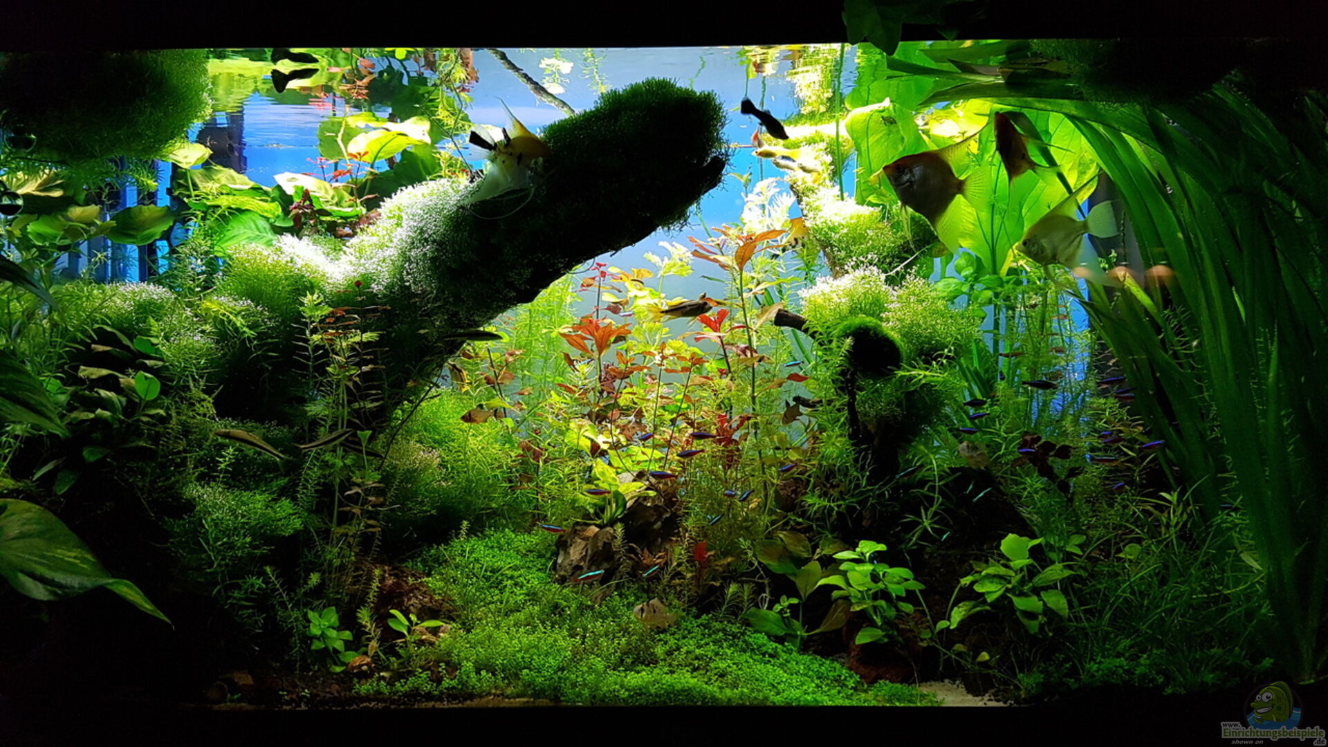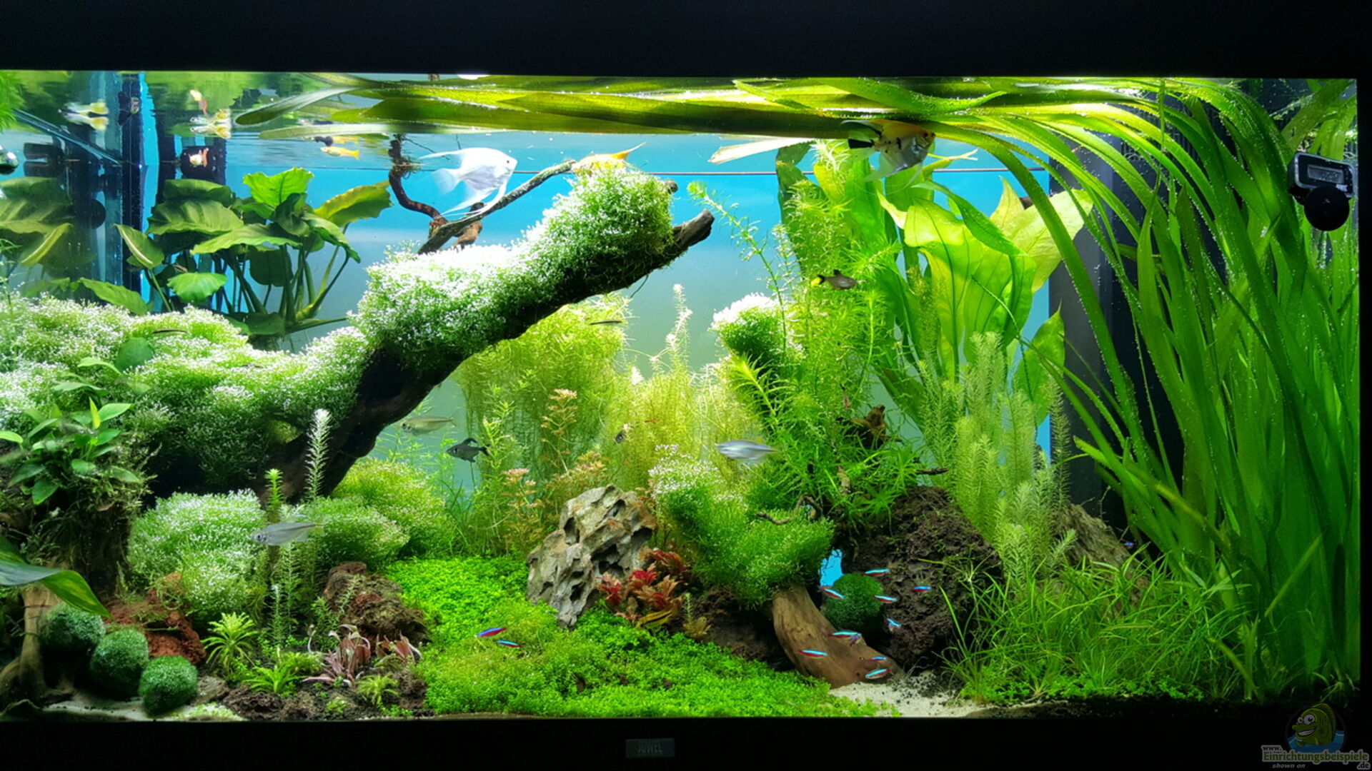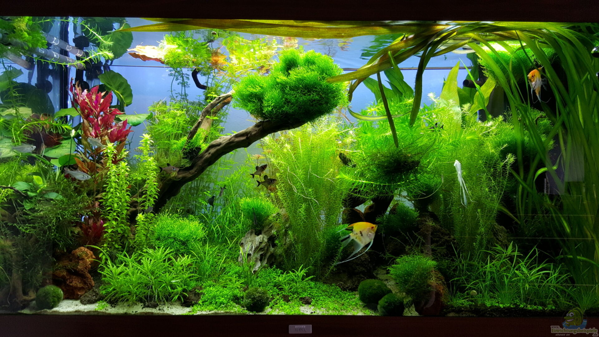12.11.2015: Nach einem kleineren Algenproblem wurde eine "Grundreinigung" durchgeführt und die Pflanzen vor einer Woche etwas zurechtgestutzt. Au??erdem sind ein vier der Skalare in mein anderes Becken umgezogen und damit die Besatzdichte in diesem Becken etwas ausgedünnt. "Besatz", aktualisiert. Der Versuch, vier Garnelen einzusetzen Schlug fehl - die Skalare haben sich diesen Snack nicht entgehen lassen. Neues Hauptbild eingestellt.
