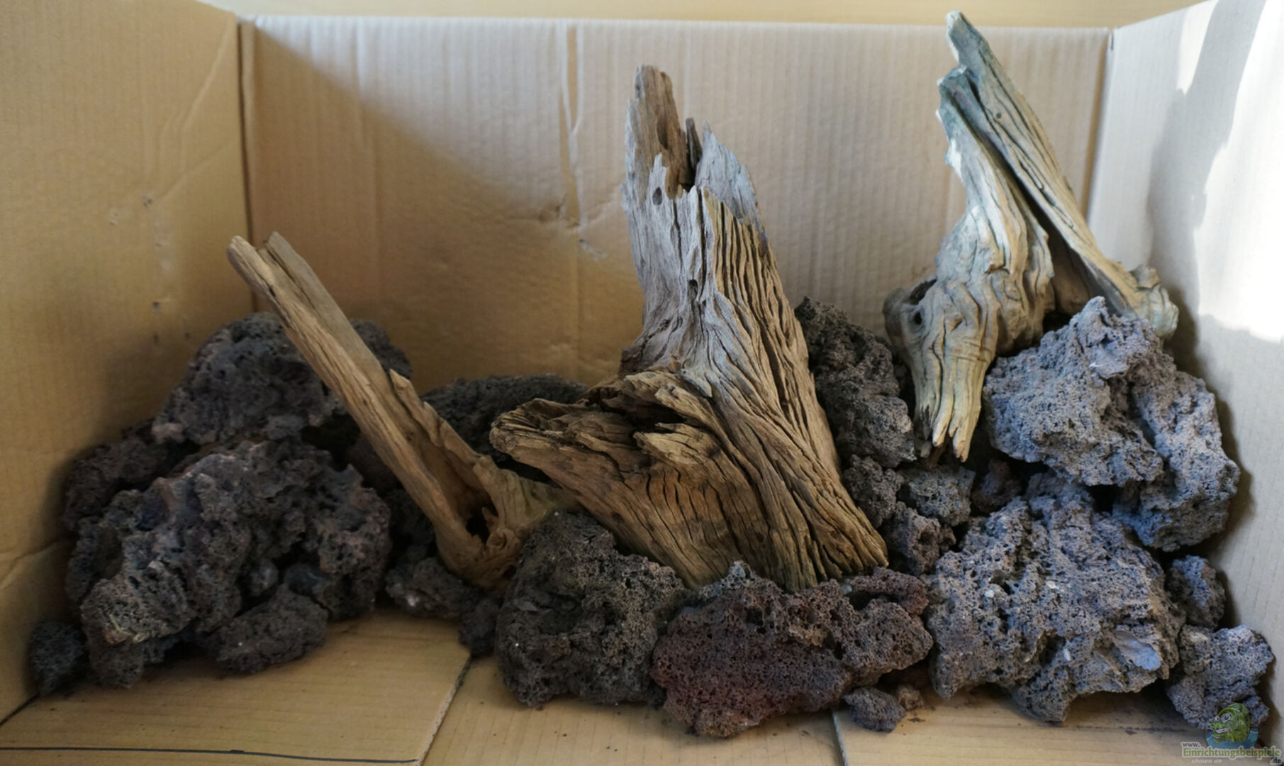 Etwa 8 Kg Island Lava und drei Wurzeln.