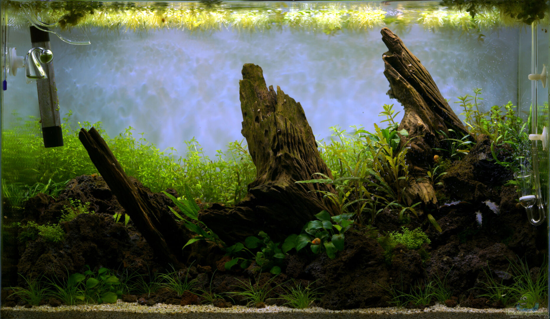 Ich habe das Becken in der Rubrik Aquascaping eingeordnet, obwohl es nicht wirklich eine Landschaft darstellen soll. Soll eher ein Versuch in Richtung "Naturaquarium" sein. Letztendlich ist es aber ja aber aauch völlig egal wie man es nennt...