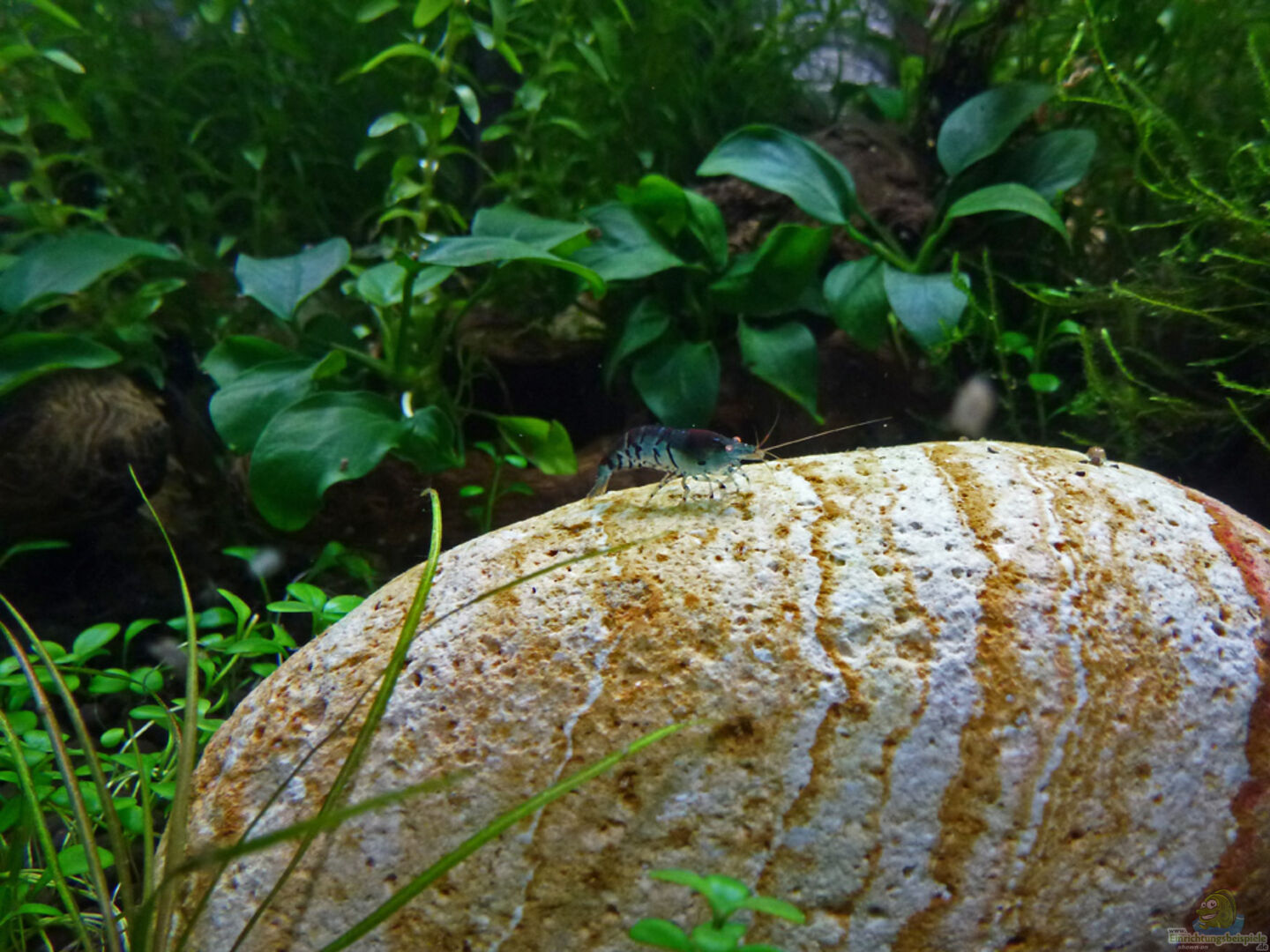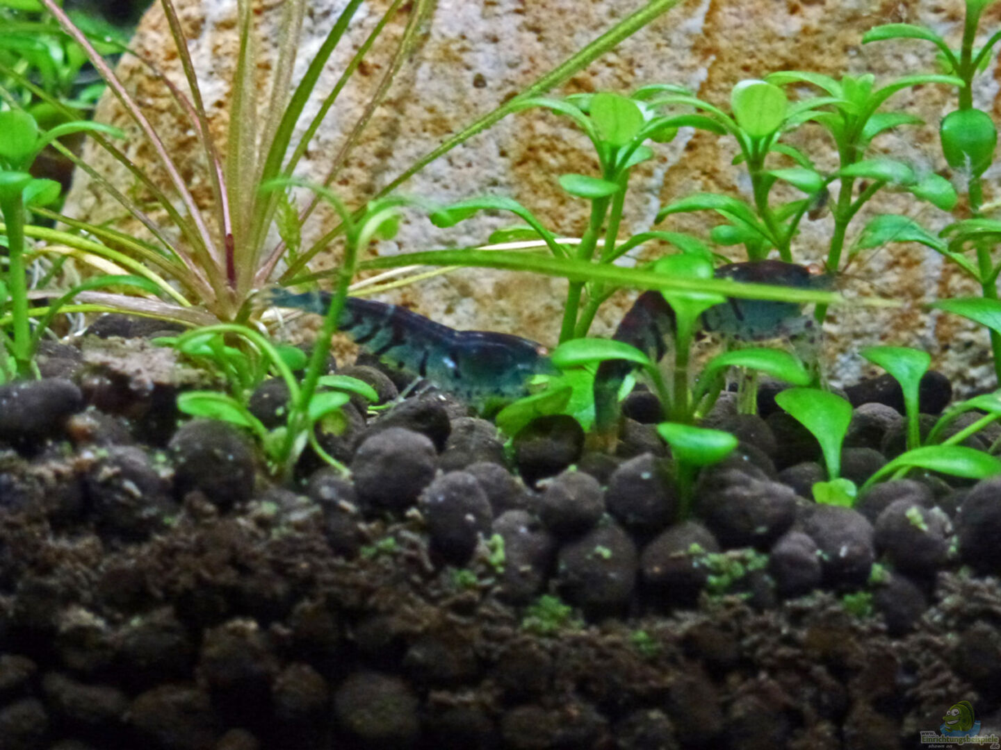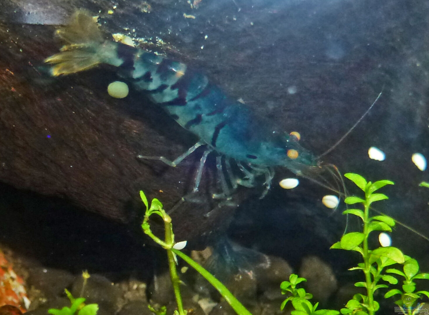 Unter anderem ist auch zu beachten, dass die Garnelen niemals in zu kleinen Gruppen gehalten werden sollten. Nicht nur, dass ansonsten die Zucht schwieriger sein kann, die Garnelen fühlen sich in Gruppen ab zehn Exemplaren einfach wohler. Wer die Zuchterfolge von Beginn an mit einplant, wird somit auch ein grö??eres Becken für seine blauen Tigergarnelen anlegen. In meinem Fall ca. 70 Liter.