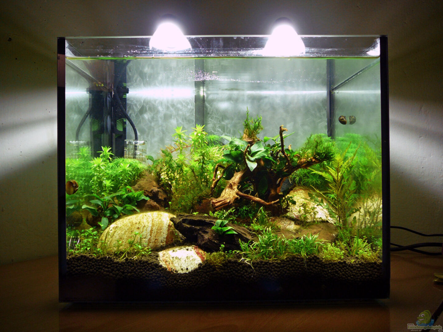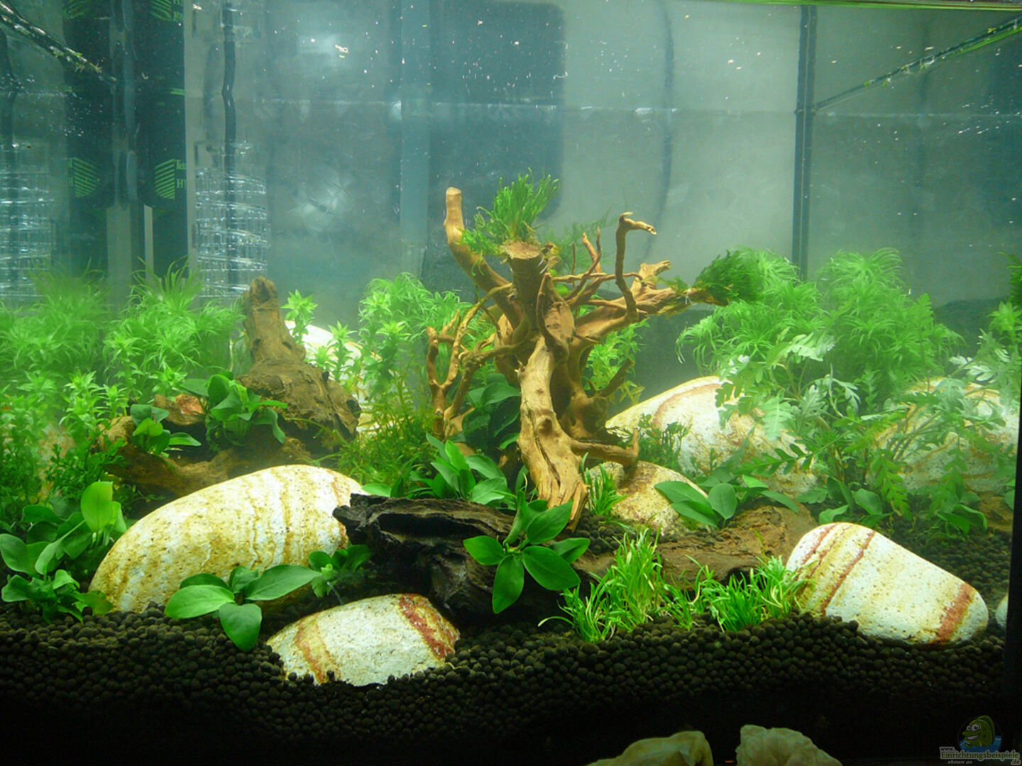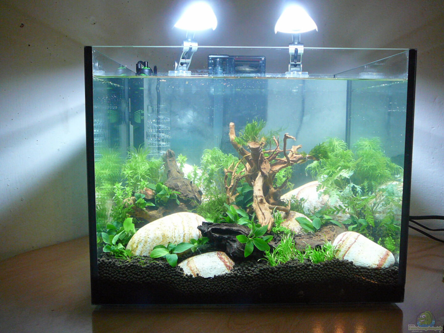 das sieht mal richtig gut aus. Viel Liebe zum Detail, interessante Steine und Pflanzen, auch die Wasserwerte hören sich richtig gut an für Garnelen (später). Lediglich fehlt mir zur persönlichen Perfektion mehr `Höhe` im Becken. Es ist alles flächig angeordnet (kleiner Steinaufbau o.ä.).
