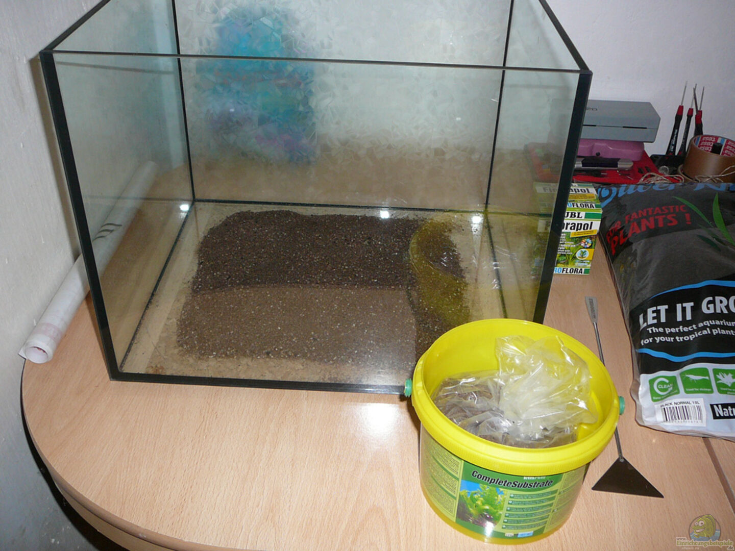 Der Bodengrund wurde als erstes mit JBL Planzengrund gestaltet. Anschlie??end kamen noch einige Düngezusätze hinzu. ??ber das ganze habe ich dann Nature Soil von Oliver Knott gegeben.