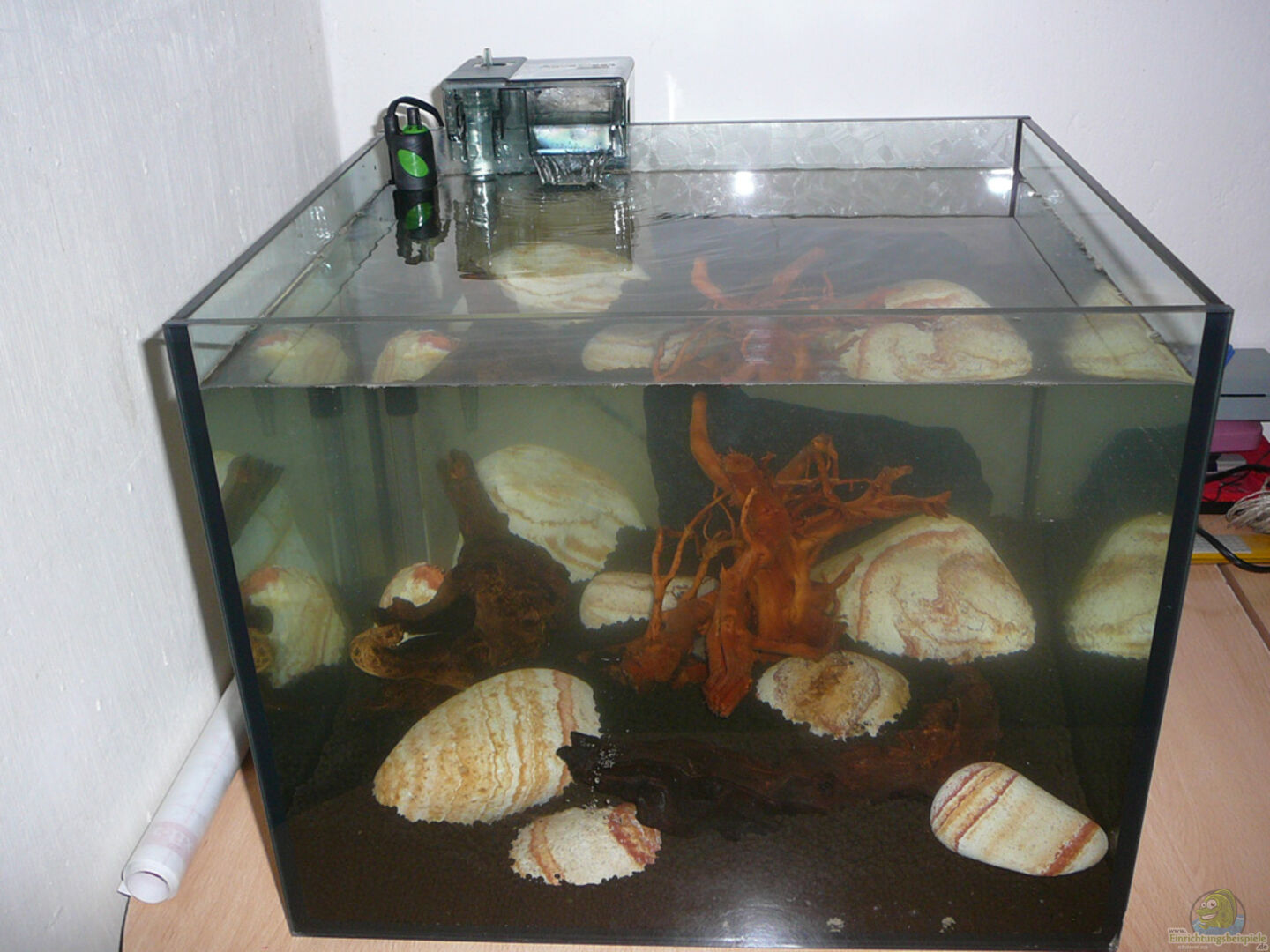 Derzeit noch kein Besatz. Geplant ist der Besatz mit Garnelen. Vielleicht kann ich das Becken zum selektieren meiner Red Bees aus meinem anderen Becken verwenden. Hoffe die kleinen vermehren sich bald.