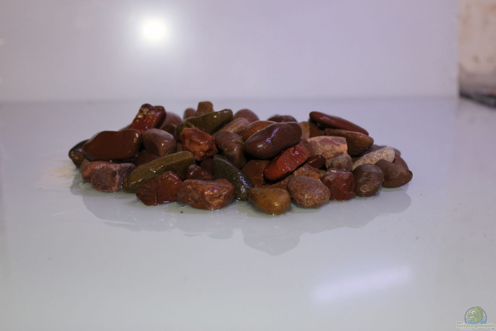 Kleine Geschiebe-Steine, um halbwegs einen Ma??stab hinzu bekommen und bei dem Original bleiben zu können. Auch farblich wurden diese ausgesucht. Die Farben gehen über grau , gelb bis rotbraun.
