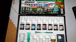 Die Wasserwerte bestimme ich mit den Pro Aquatest Combiset von JBL