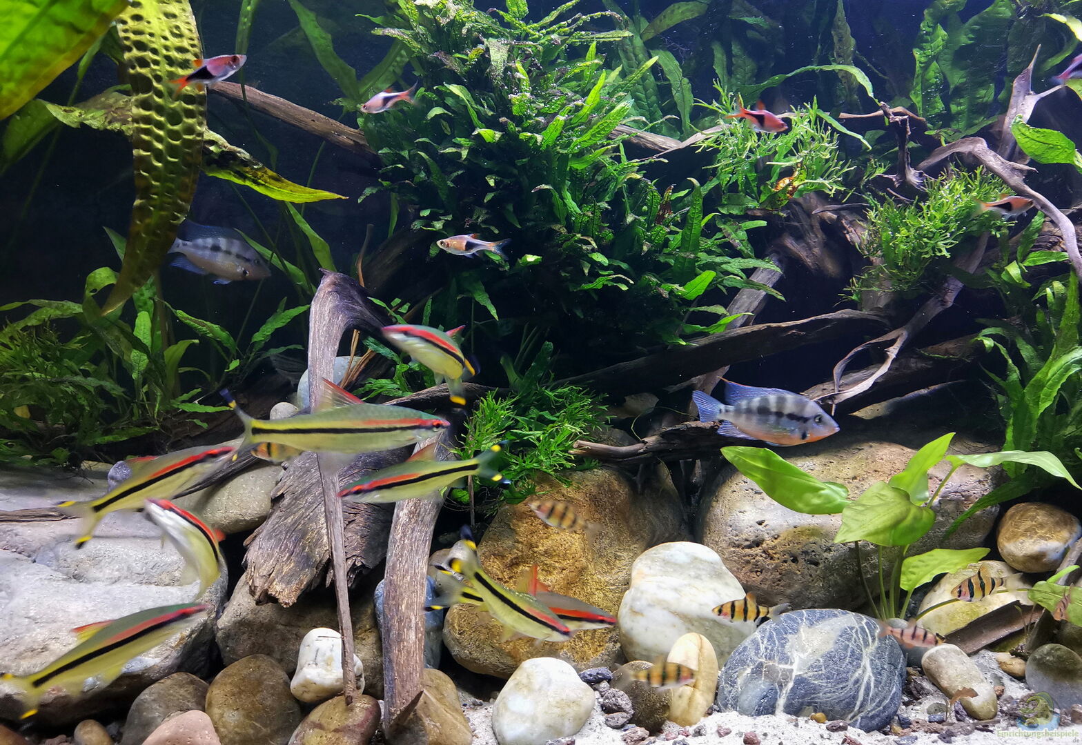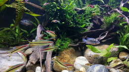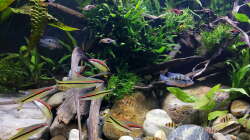 Die Fünfgürtelbarben, Feuermaulbuntbarsche und Sajica-Buntbarsche sind mittlerweile verstorben. Ebenso die Keilfleckbarben, bis auf ein Exemplar, welches tapfer durchhält.