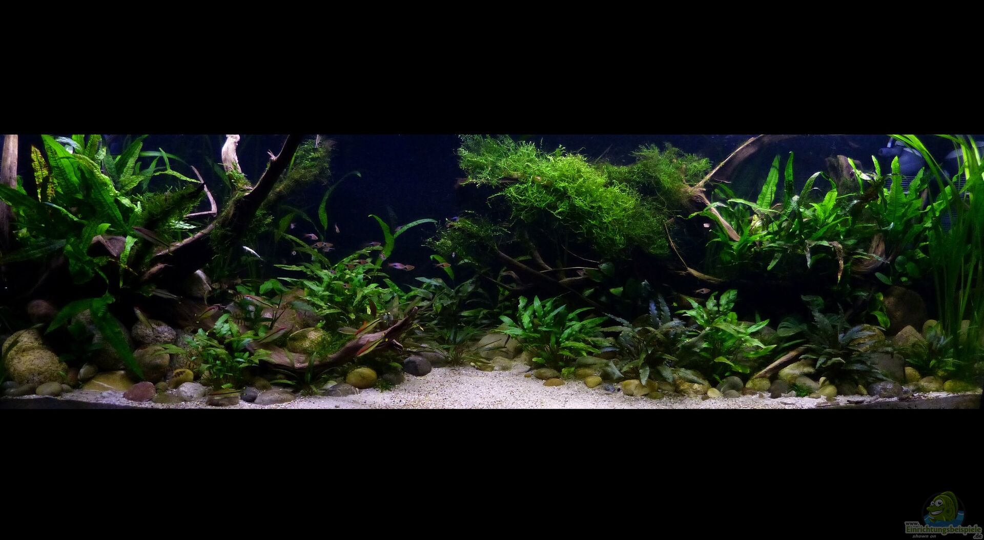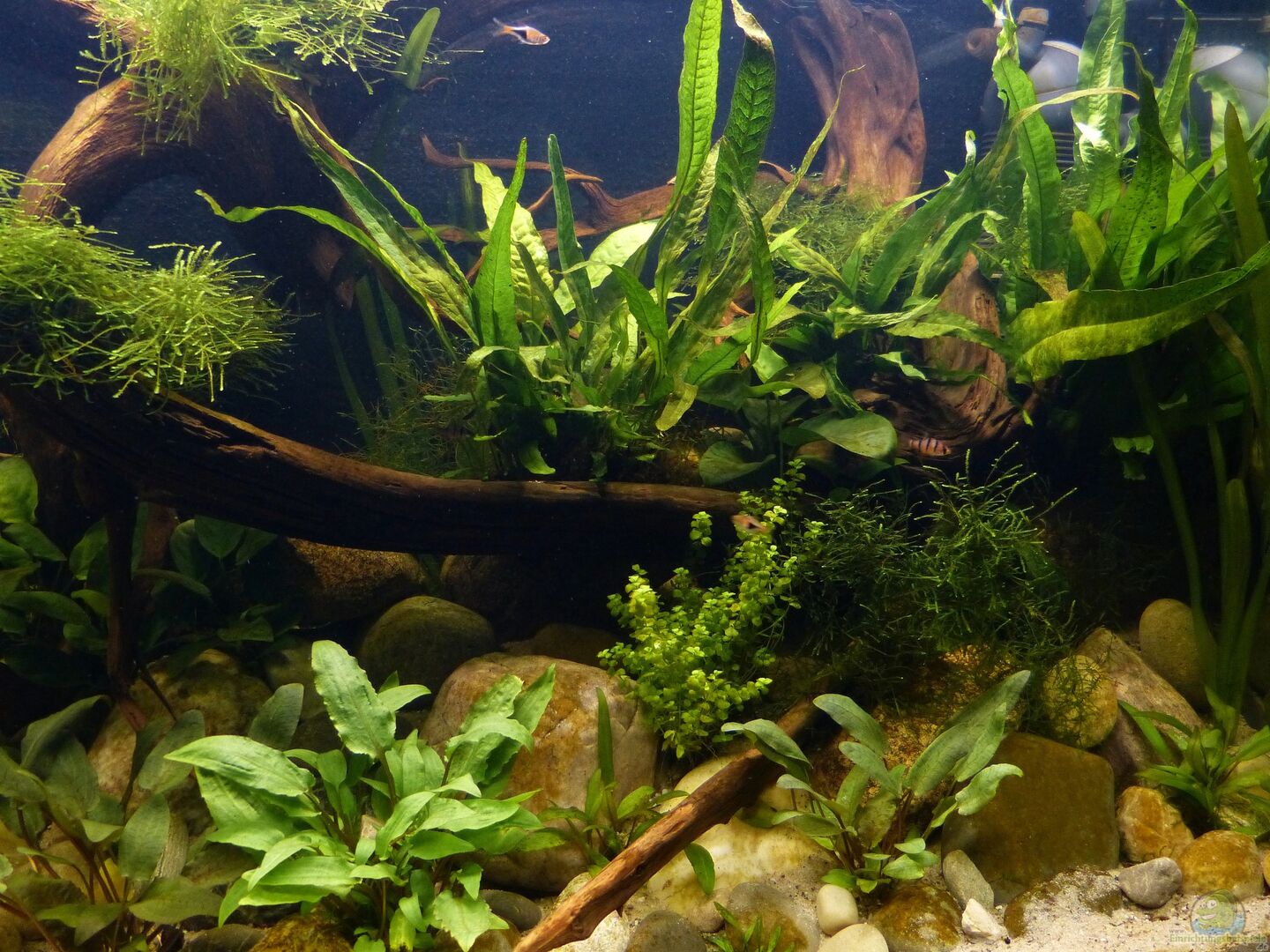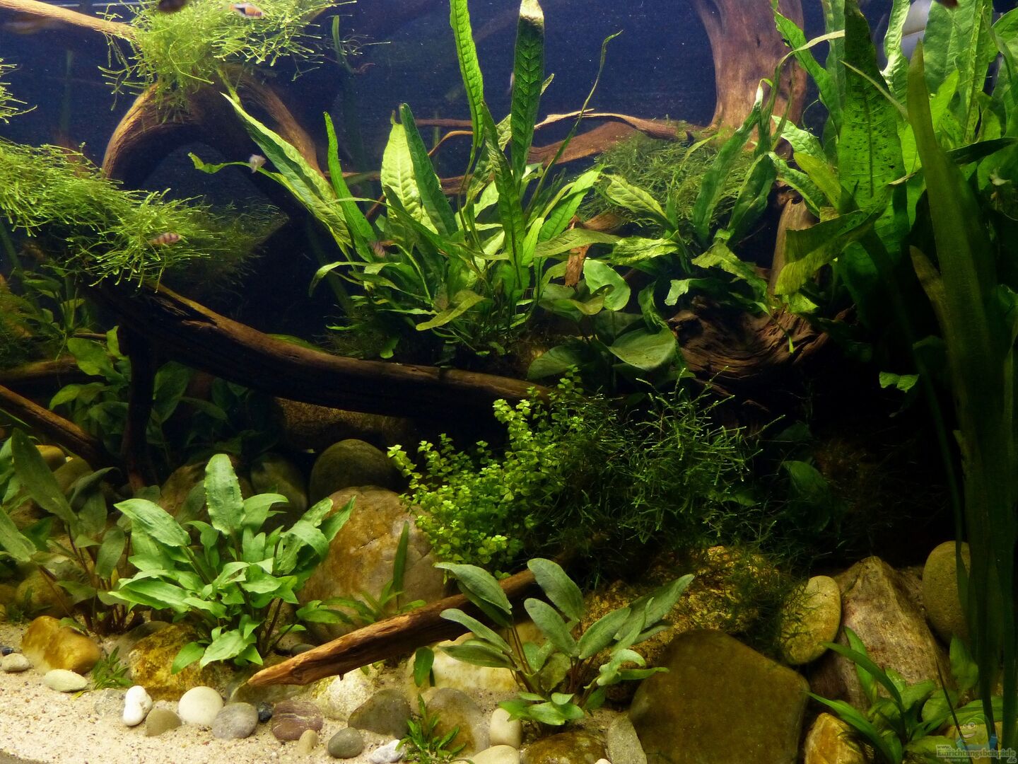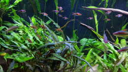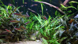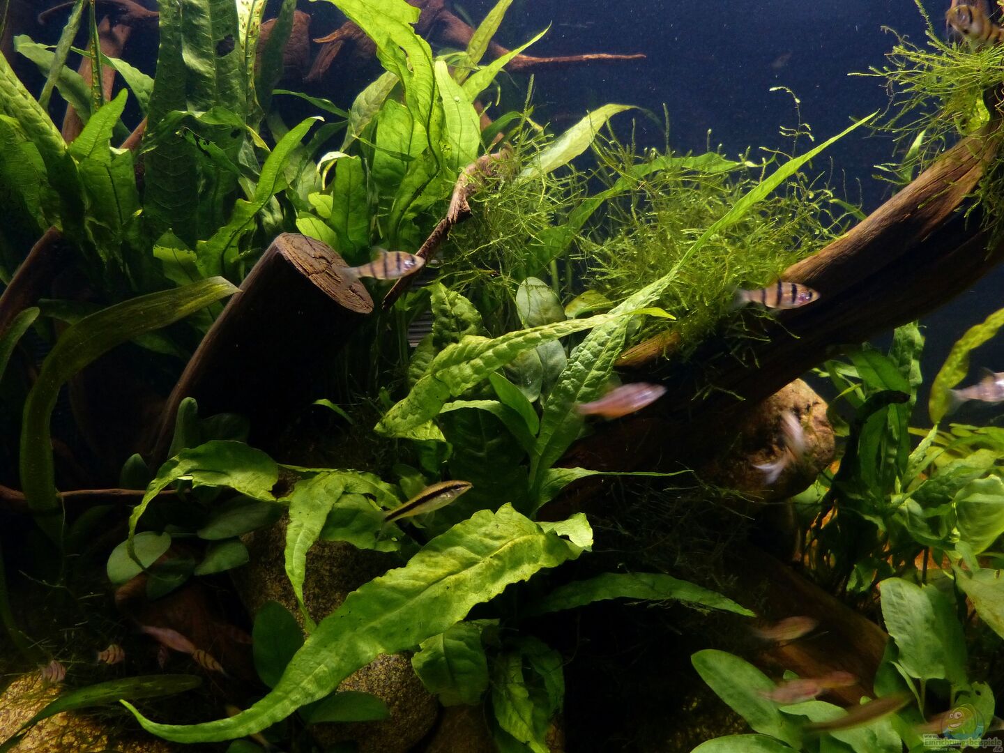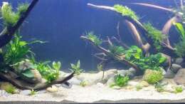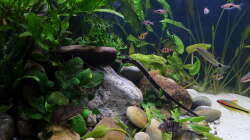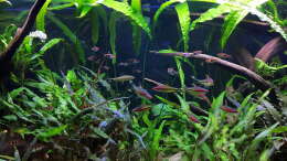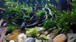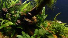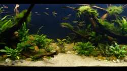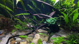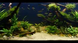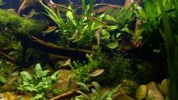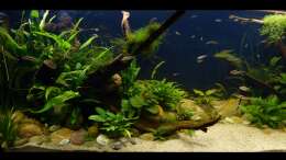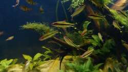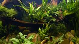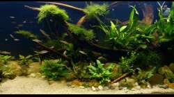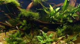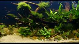 Nach 1 1/2 Jahren lässt sich sagen, dass mir das für meinen persönlichen Geschmack bisher ganz gut gelungen ist. Einzig die Moose habe ich nicht geschafft, dauerhaft in diesem Becken zu etablieren. Leider machen mir hier die puntius denisonii einen Strich durch die Rechnung, da sie das Moos auf der Suche nach Futter regelrecht zerpflücken.