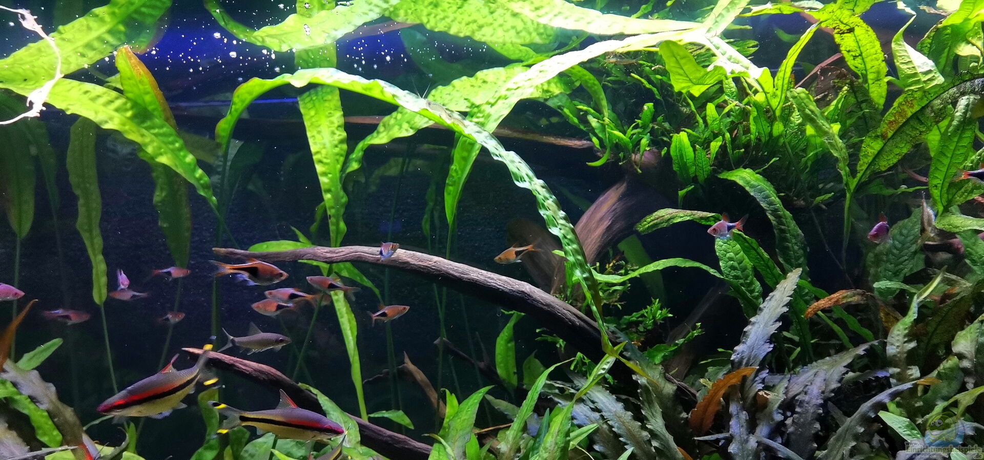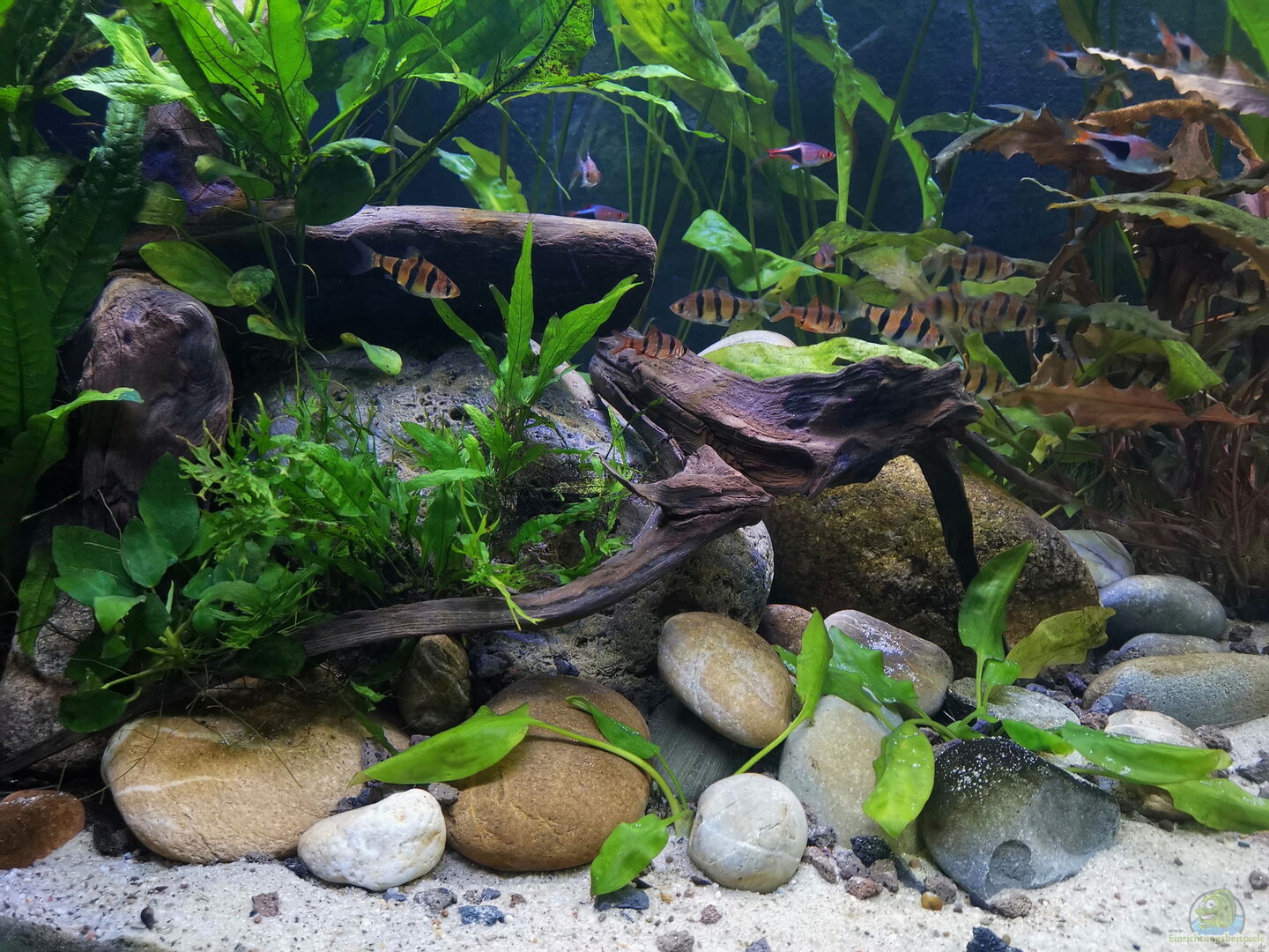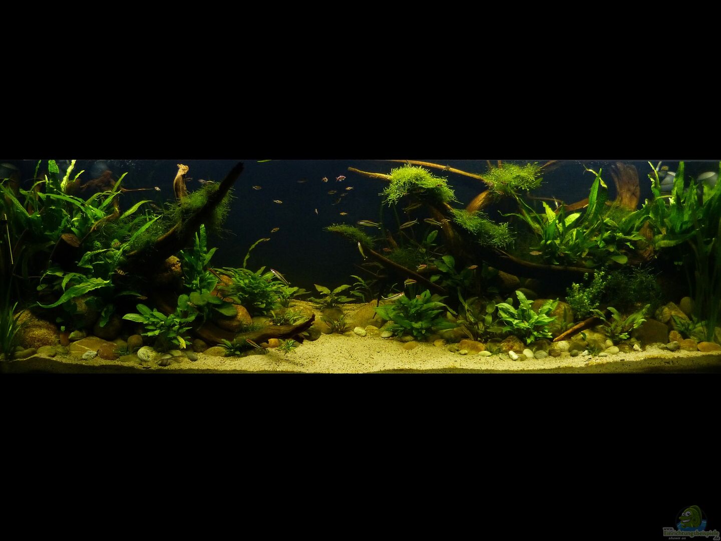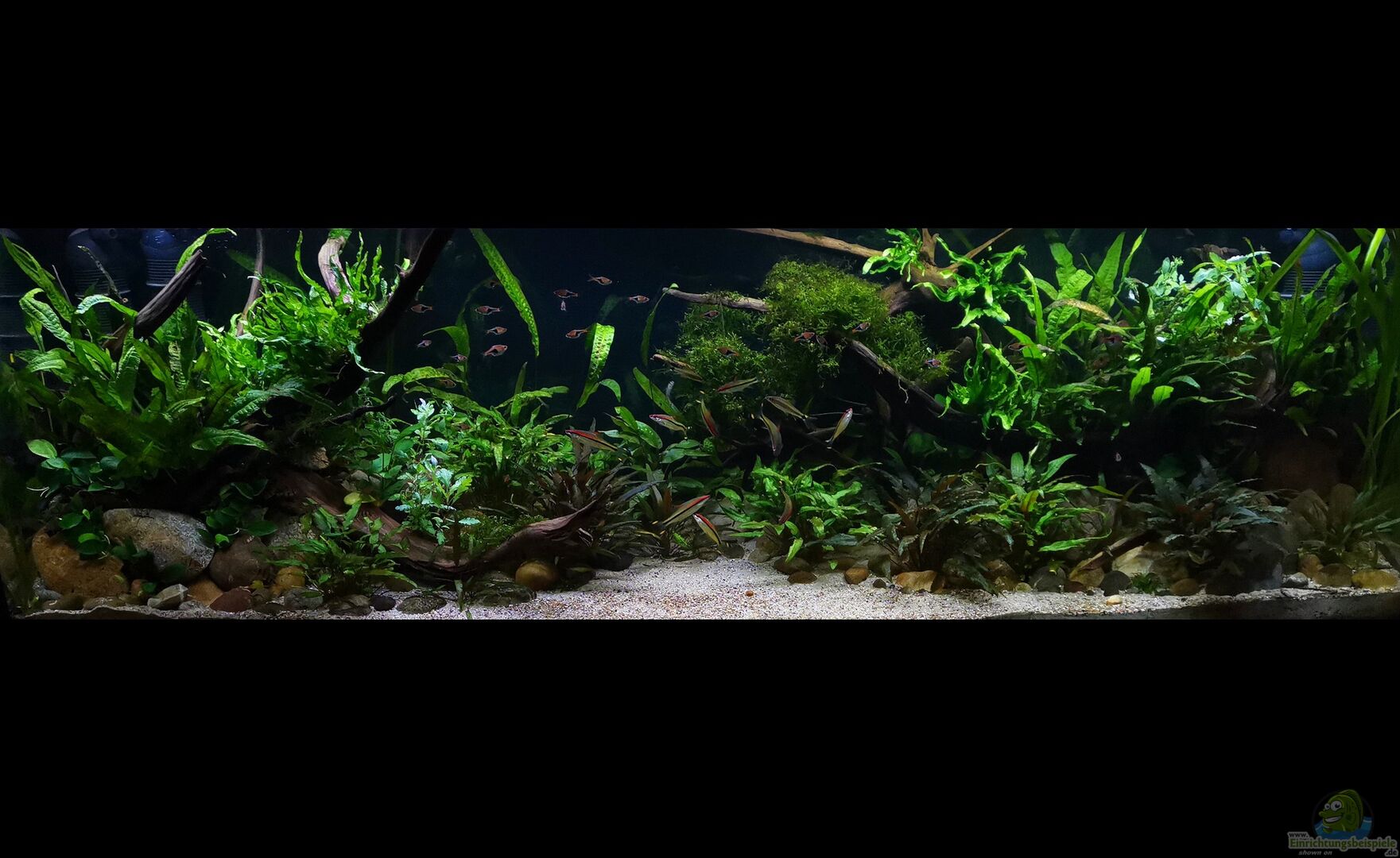 Nach 1 1/2 Jahren lässt sich sagen, dass mir das für meinen persönlichen Geschmack bisher ganz gut gelungen ist. Einzig die Moose habe ich nicht geschafft, dauerhaft in diesem Becken zu etablieren. Leider machen mir hier die puntius denisonii einen Strich durch die Rechnung, da sie das Moos auf der Suche nach Futter regelrecht zerpflücken.