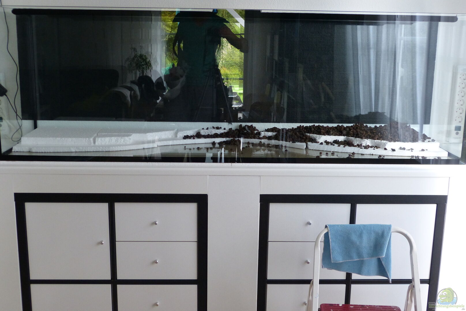 - Als Hintergrund 3cm dickes Styropor, schwarz lackiert hinter dem Becken, welches gleichzeitig als Isolierung dient.