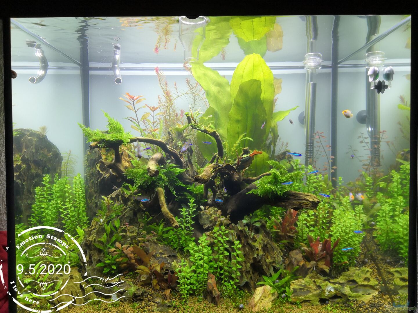 Alles in allem läuft super gut, das Aquarium läuft jetzt 2, 5 Jahre. Den Besatz habe ich zwischenzeitlich einige Male geändert. Man probiert sich halt aus und manchmal passt der Besatz nach einer Weile nicht mehr und man muss sich neu orientieren. Momentan habe ich eine Gruppe von 11 Zitronensalmlern die nach kurzer Zeit Nachwuchs hatten. Momentan sind es 3 Jungtiere ca 4 Wochen alt.