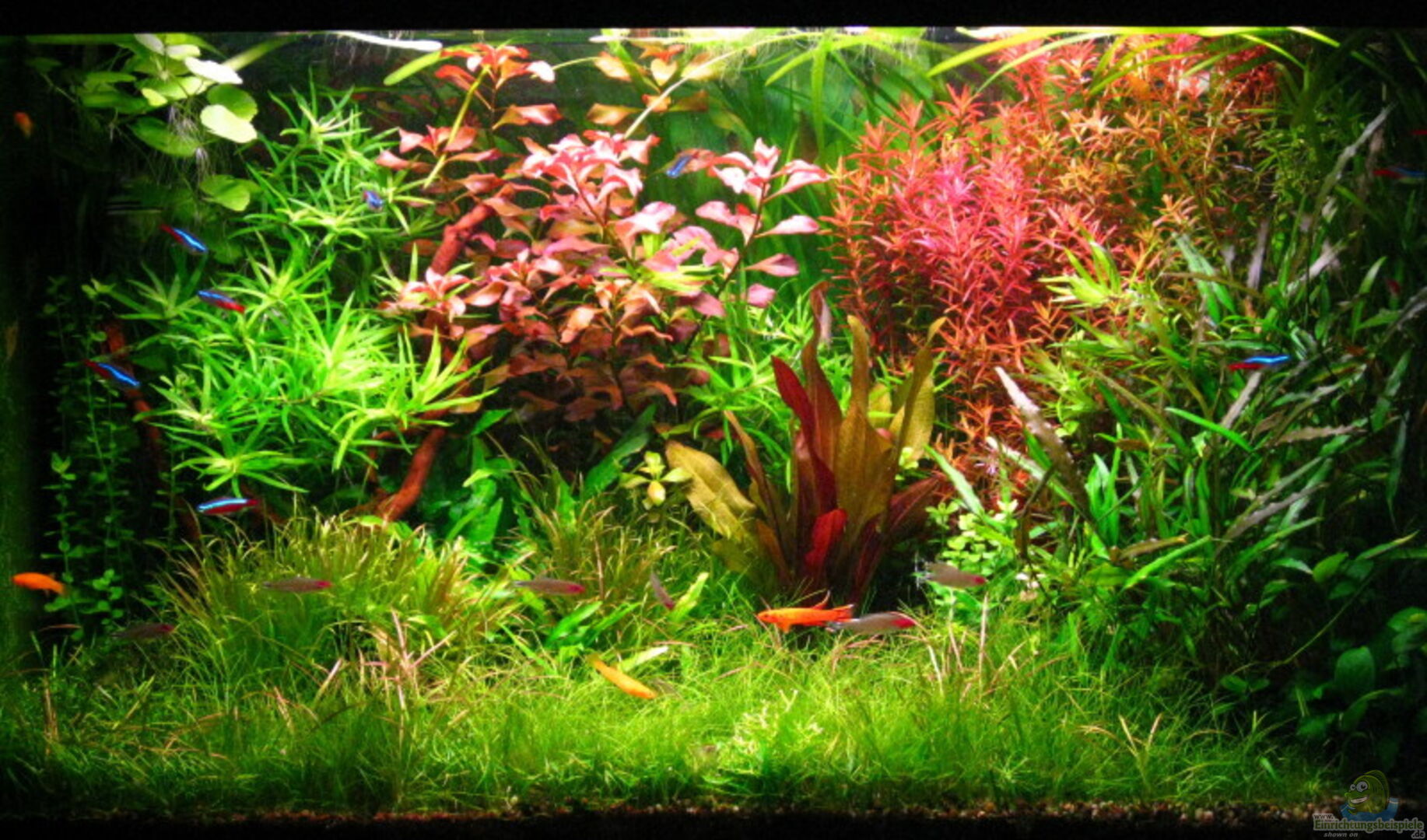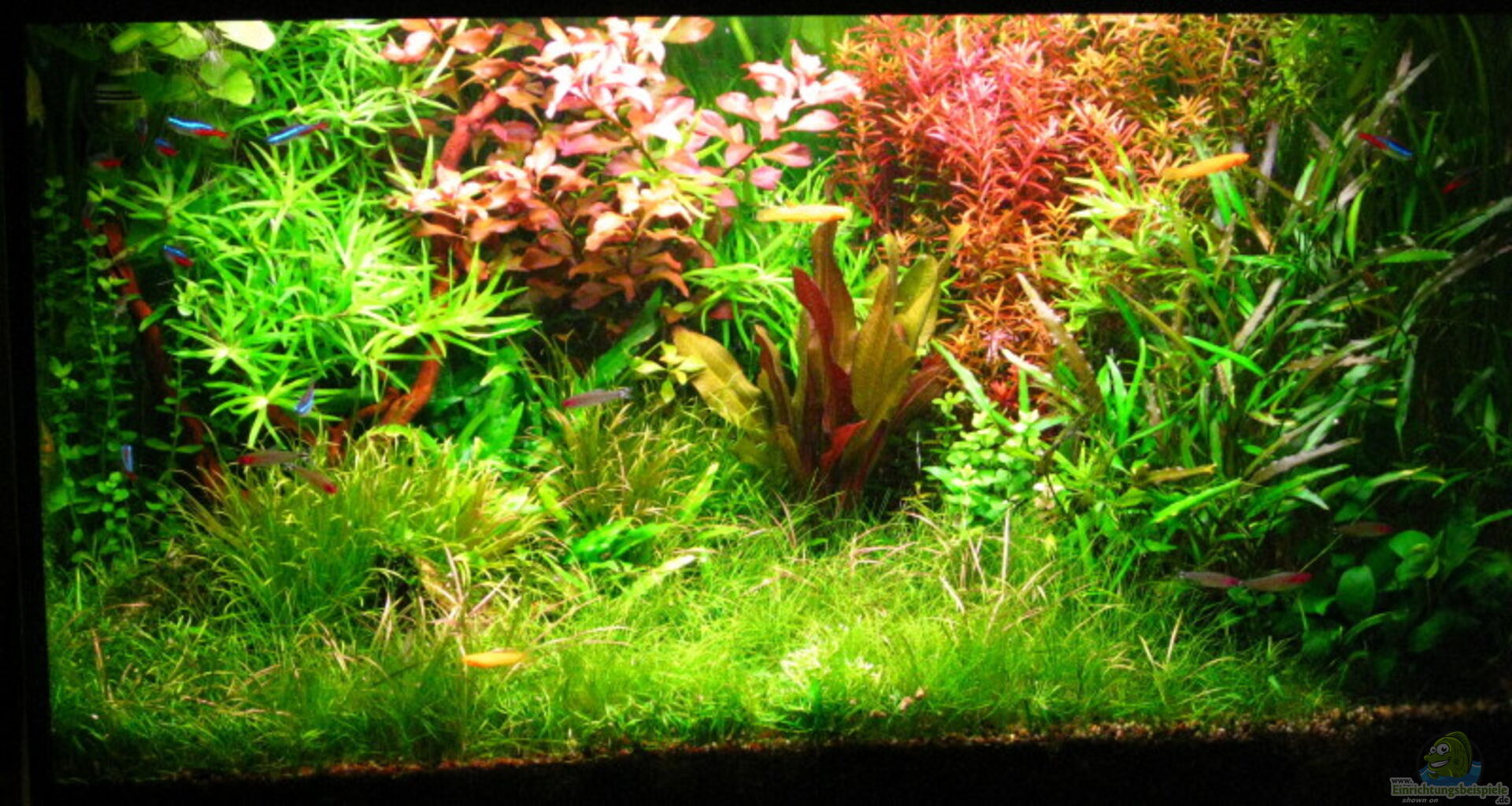 Rotala rotudifolia, Ludwigia repens x arcuata, Vallisneria spiralis, Heteranthera zosterifolia, Echindorus Dschungelstar Nr.2, Cryptocoryne wendtii, Cryptocoryne x willisii, Eleocharis parvula, Eleocharis acicularis, Anubias barteri var.nana, Hydrocotyle leucocephala, Blyxa japonica