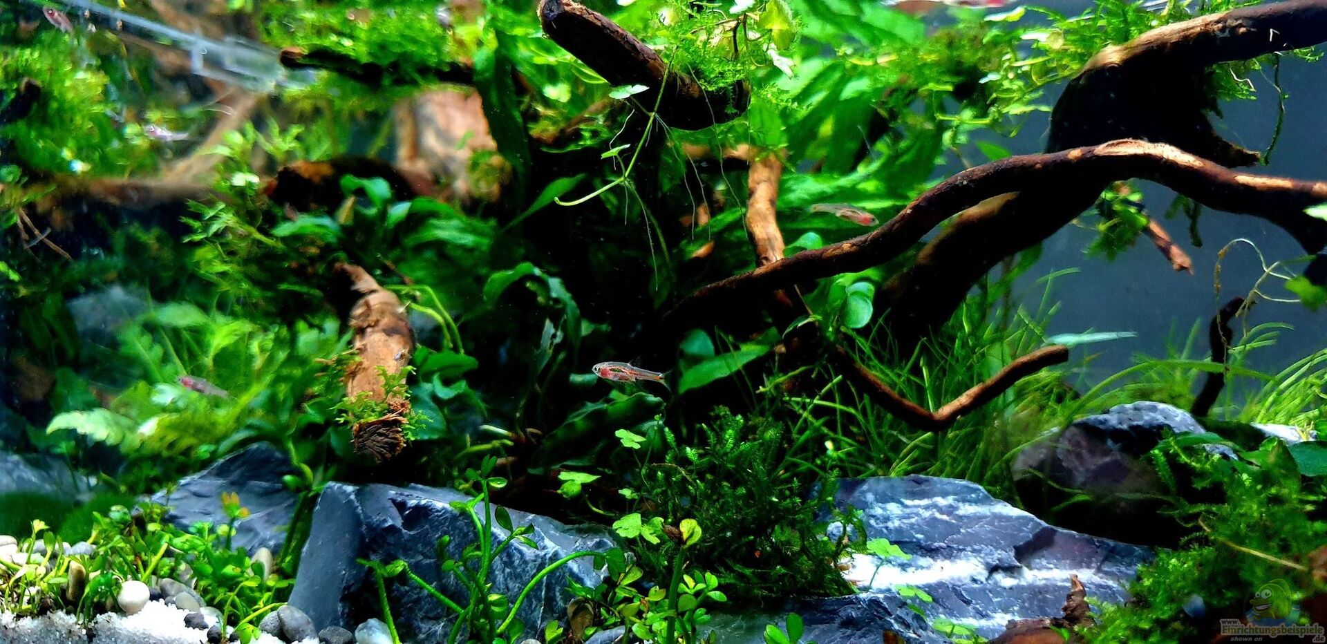 Auf der Wurzel im Submersen Teil noch Leptodictyum riparium (stringy moss) hinzugefügt. Momentan noch eher klein.