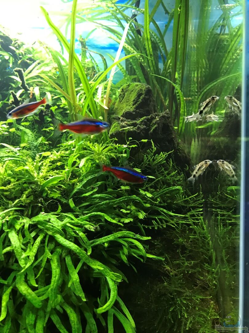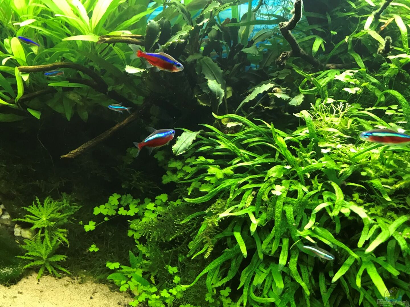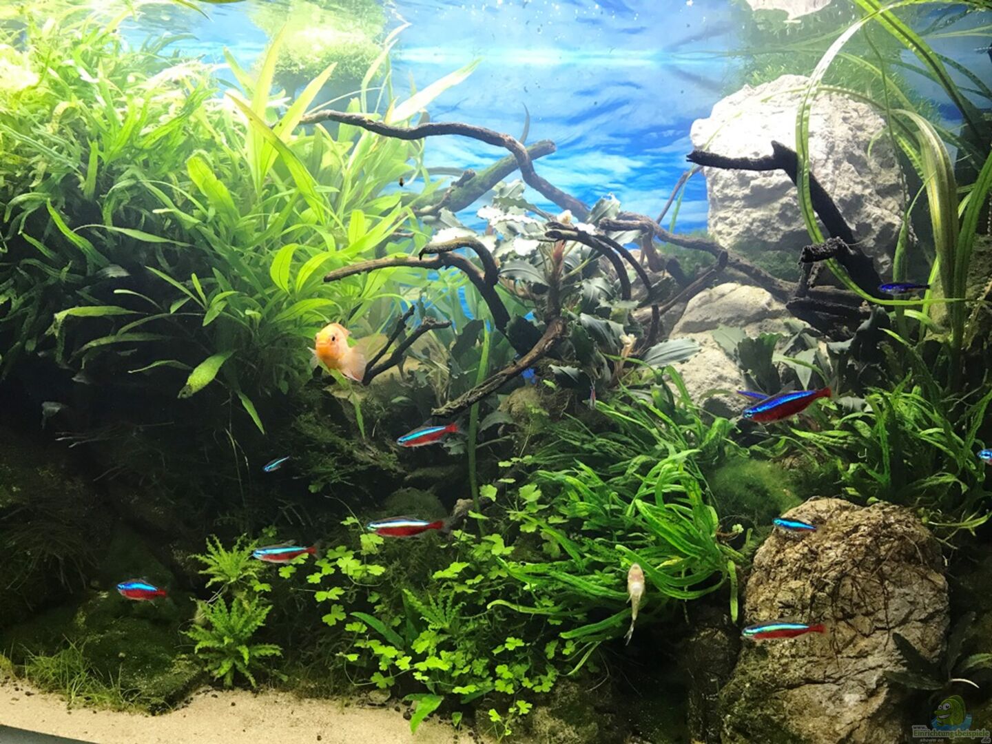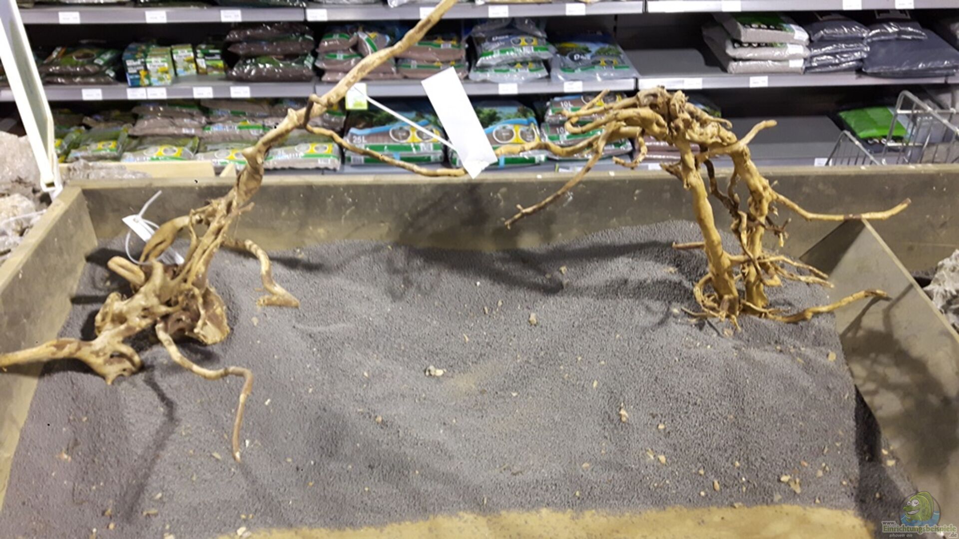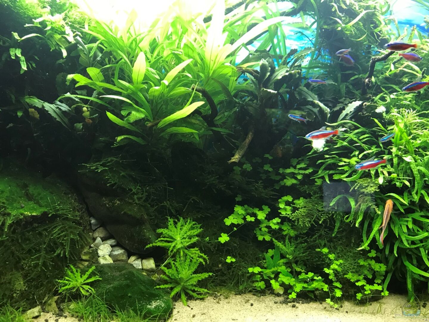 Habe den vorderen Sand gegen ADA Colorado sand ausgetauscht und noch ein bisschen anders bepflanzt. In den hinteren Teil habe ich eine Straus an Talawa Wood mit einem Kabelbinder zusammengebunden und in die Bestandswurzel geklemmt um ein bisschen mehr Tiefe in das Becken zu bringen. Die blaue Rückwand habe ich entfernt.