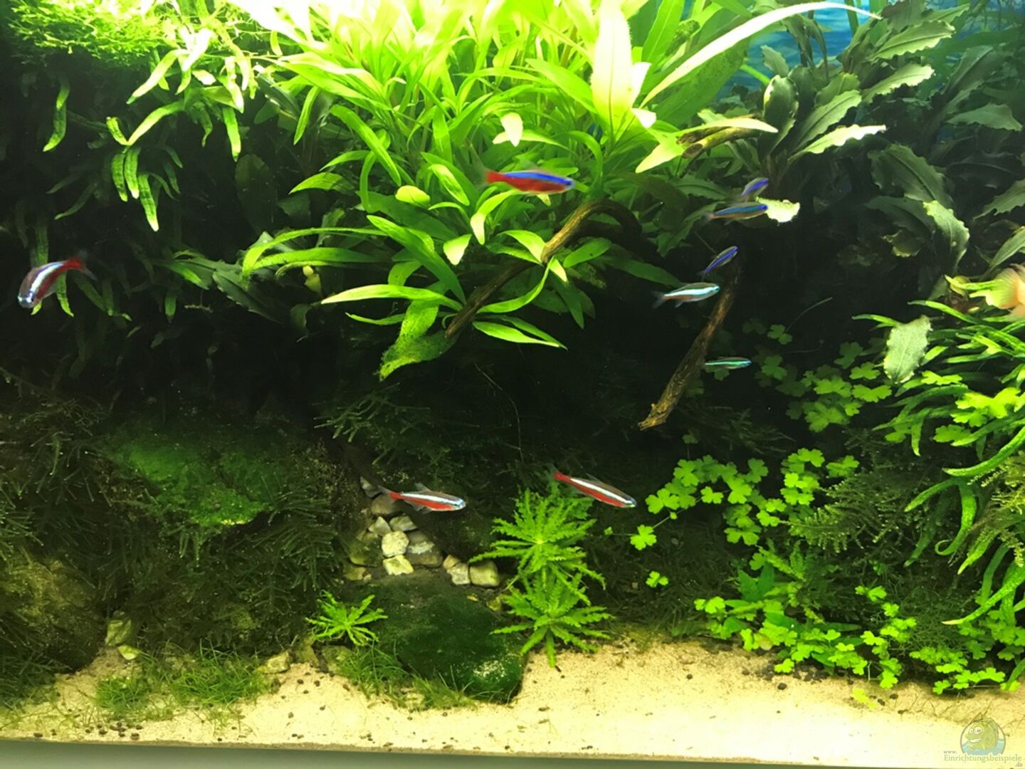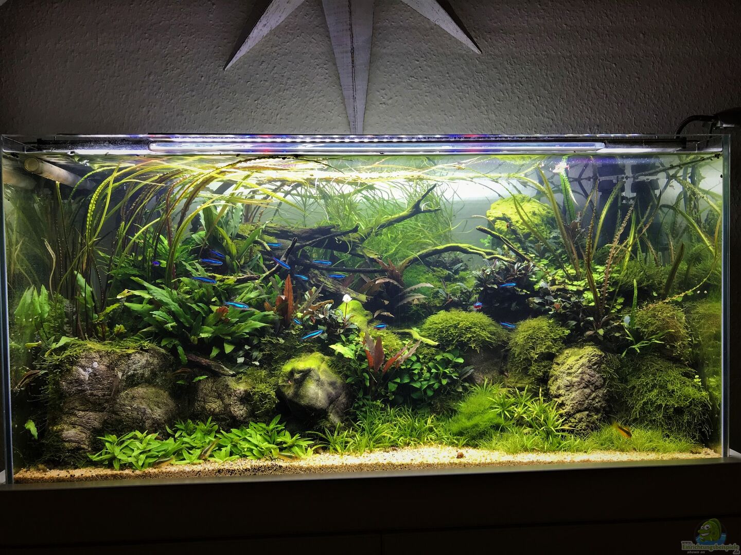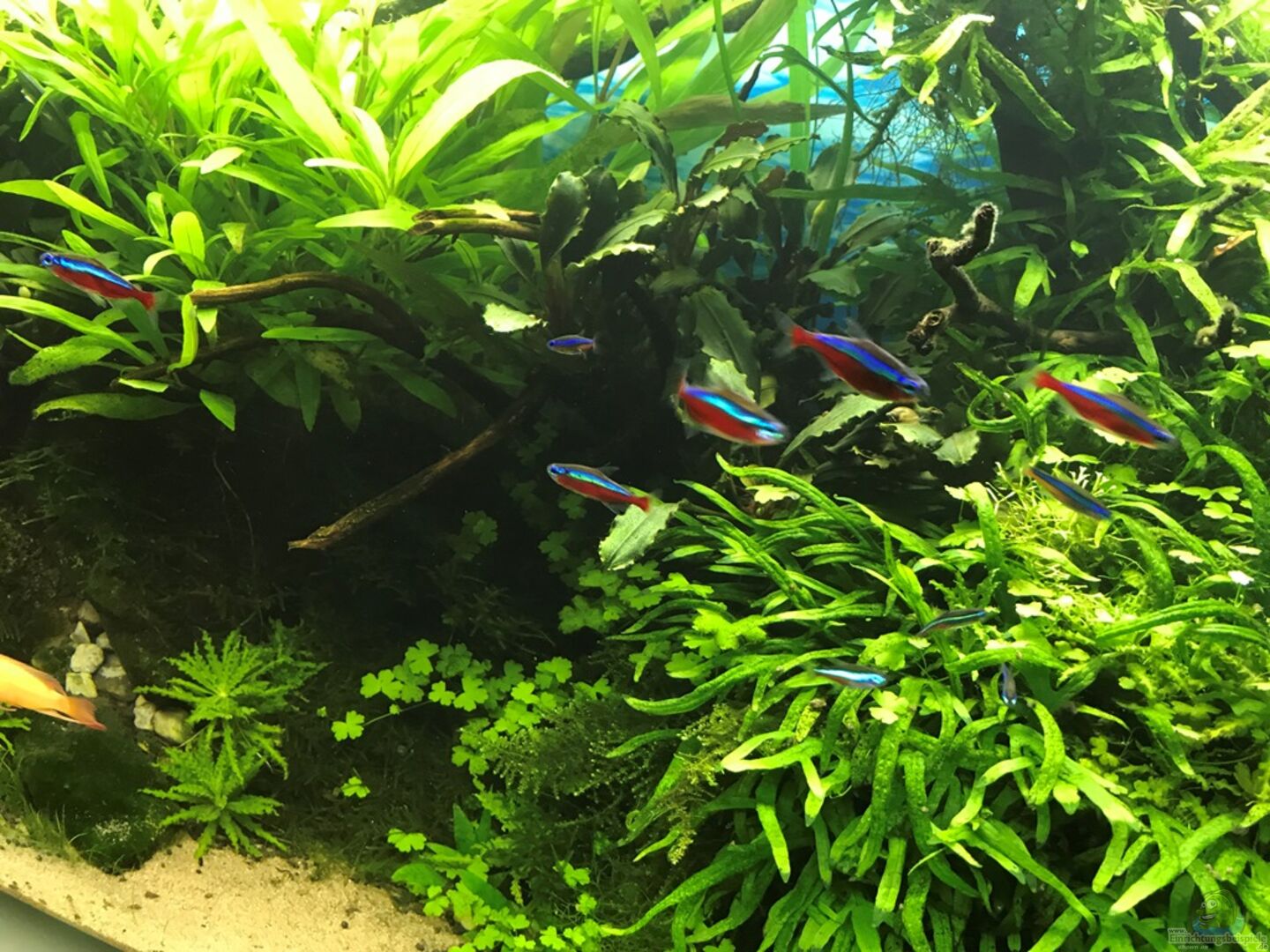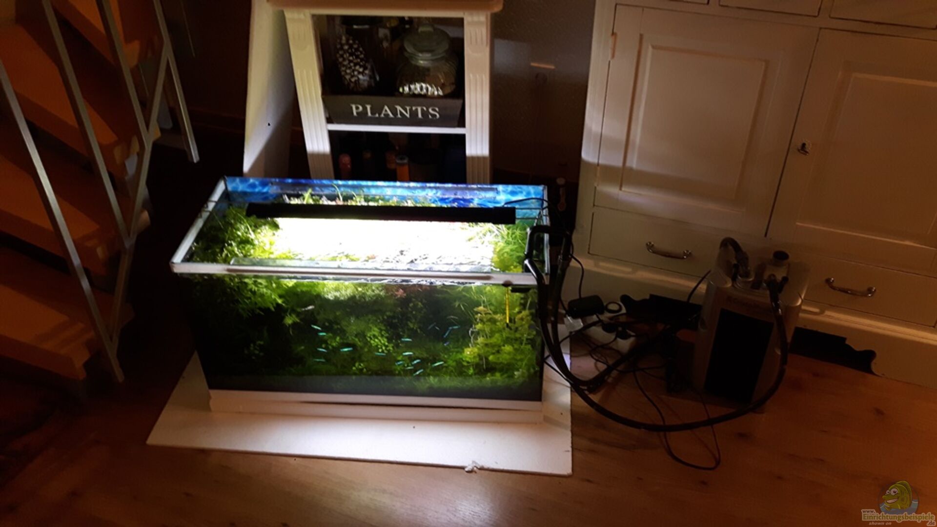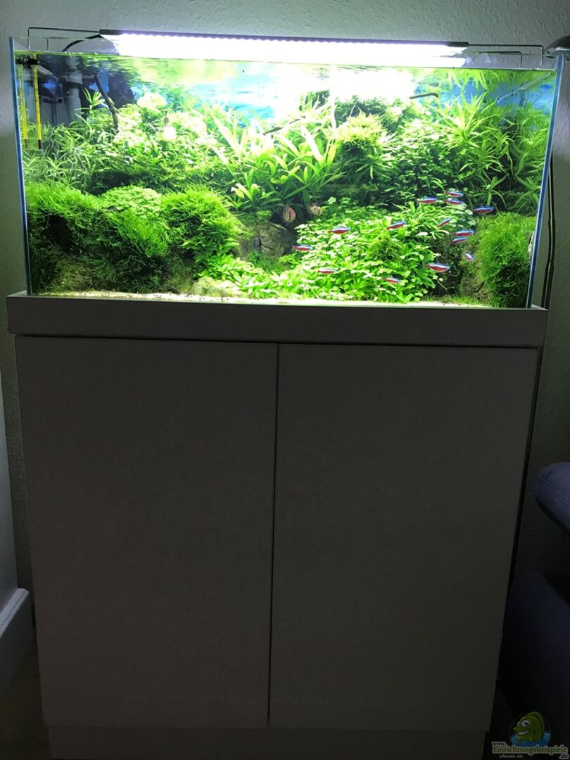 Ich habe mir ein Weissglas AQ zugelegt, da hier die Farben der Fische und Pflanzen noch besser "rüberkommen". Habe mir im Nachgang von meinem Schreiner noch einen neuen Unterschrank bauen lassen.