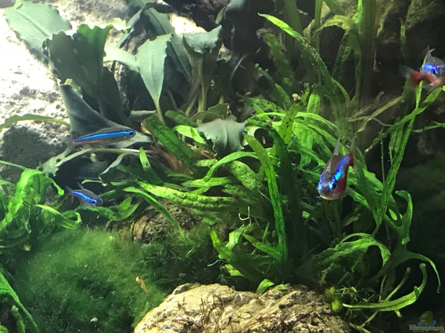 Habe das Becken nochmals umgestaltet, da der Javafarn vorne zu gro?? geworden ist. Ich habe mit Seegebirge eine Felslandschaft eingefügt und davor eine Wurzel mit Bucephalandra eingebracht, den Javafarn geteilt und wieder in die Felsspalten gesteckt. Jetz muss alles nur noch schön wachsen.... ;-)))