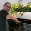 Oberhalb des Beckens hängt eine Pflanzenrinne aus Schwarzglas. Diese ist mit Hydrokultur bepflanzt. Das Giessen erfolgt ganz herkömmlich mit der Gieskanne, es gibt also keine Verbindung zum Becken.