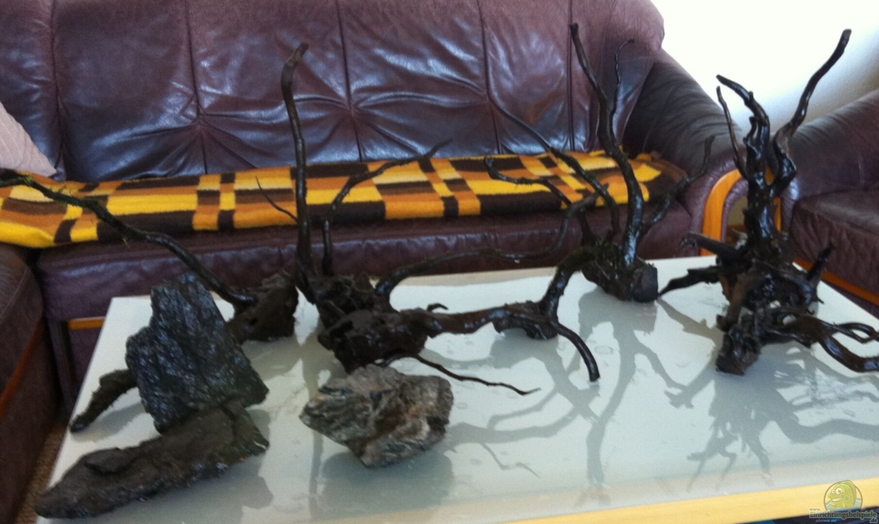 so um die 30 Lavasteine und 10 Traumwurzeln. Die Wurzel auf der linken Seite ist aus einem Stück. Wobei