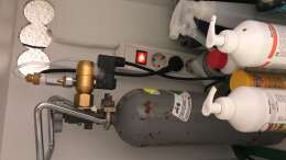 Des weiteren gibt es noch eine kleine Heizung von Aquael im Becken. Eine CO2 Anlage mit Blasenzähler und Nachtabschaltung am Druckminderer und eine Diffusor im Becken. Ein Eheim Skimmer zieht die Oberfläche schön ab, da ich eine Offenes Becken betreibe.