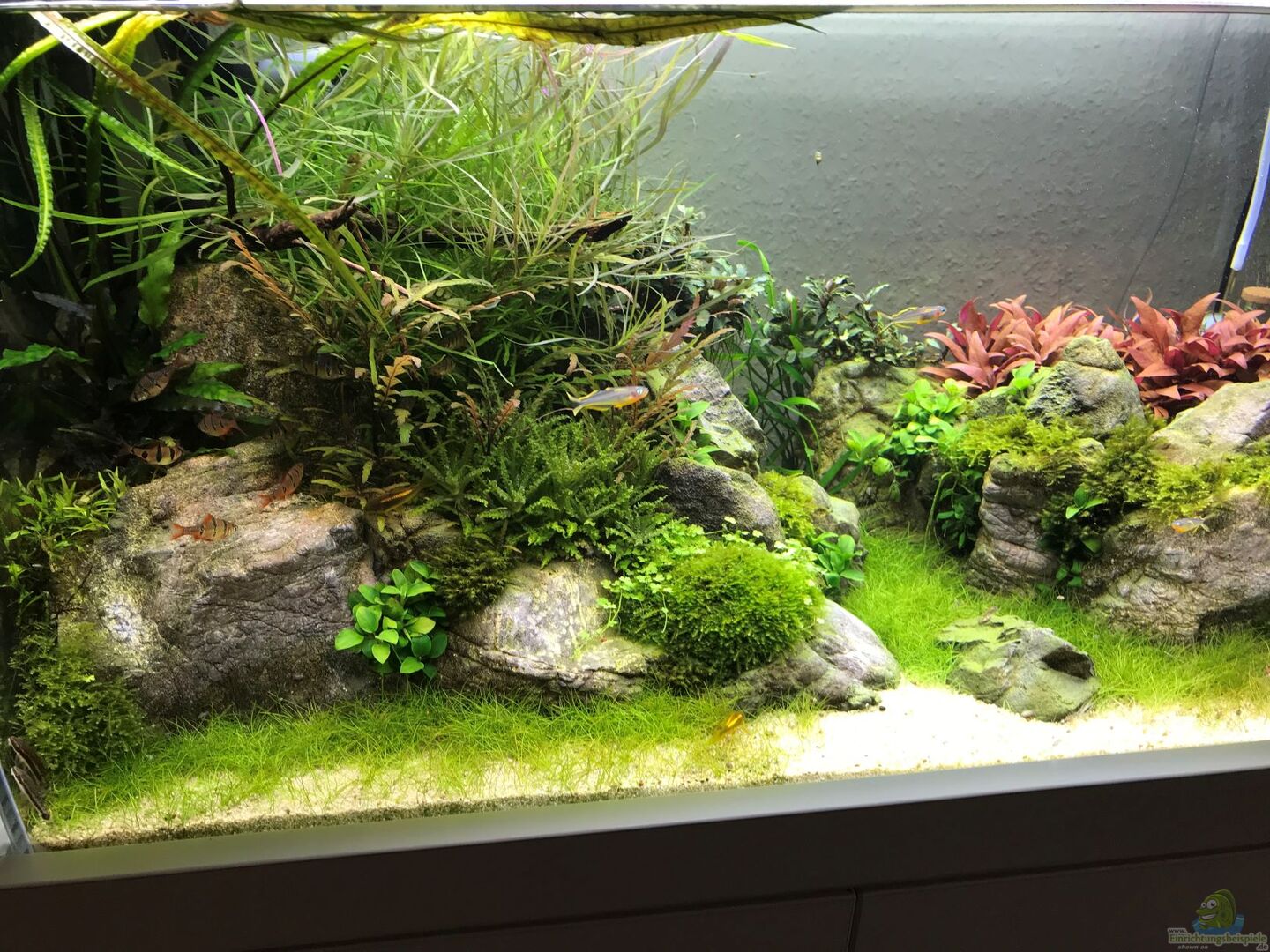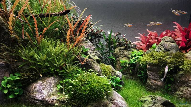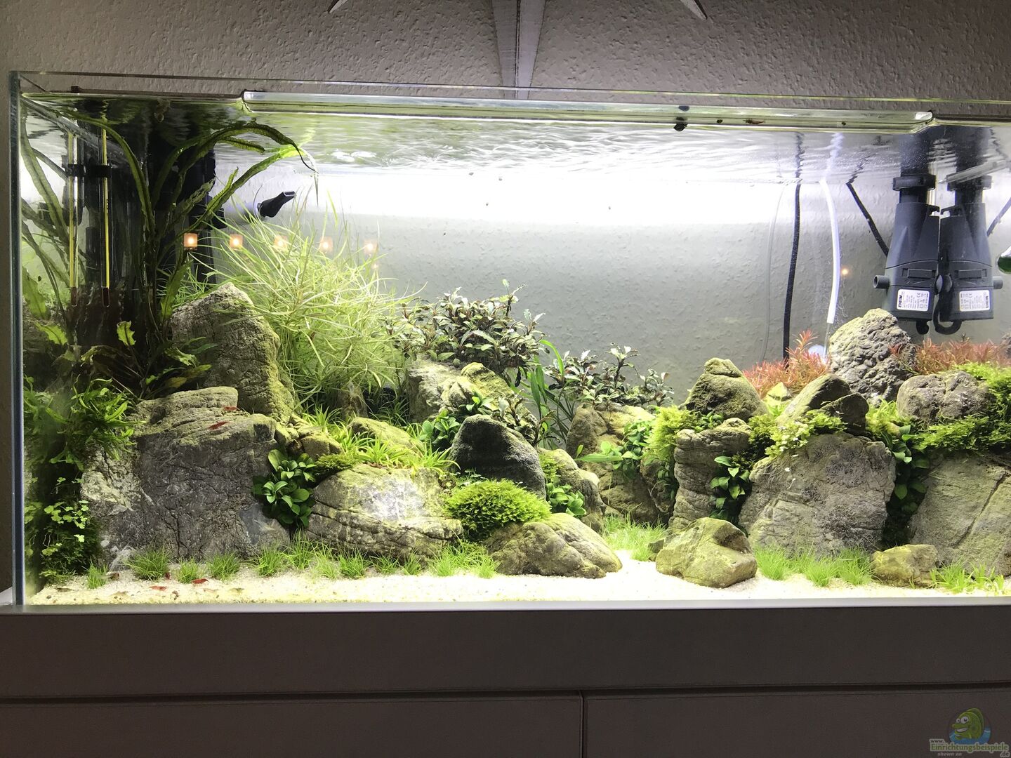 ein auf den ersten Blick schönes Aquascape hast du da erstellt. Die Anordnung der Steine mit seinem Aufbau gefallen mir sehr gut. Die Pflanzenwahl hast du sehr schön passend ausgesucht und angeordnet. Schöne Eyecatcher zum Teil mit den roten Akzenten. Freue mich schon über mehr Infos über dein Becken und den Besatz.
