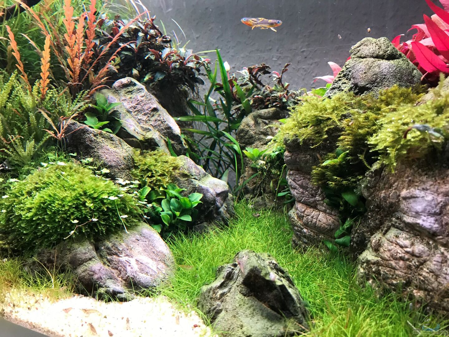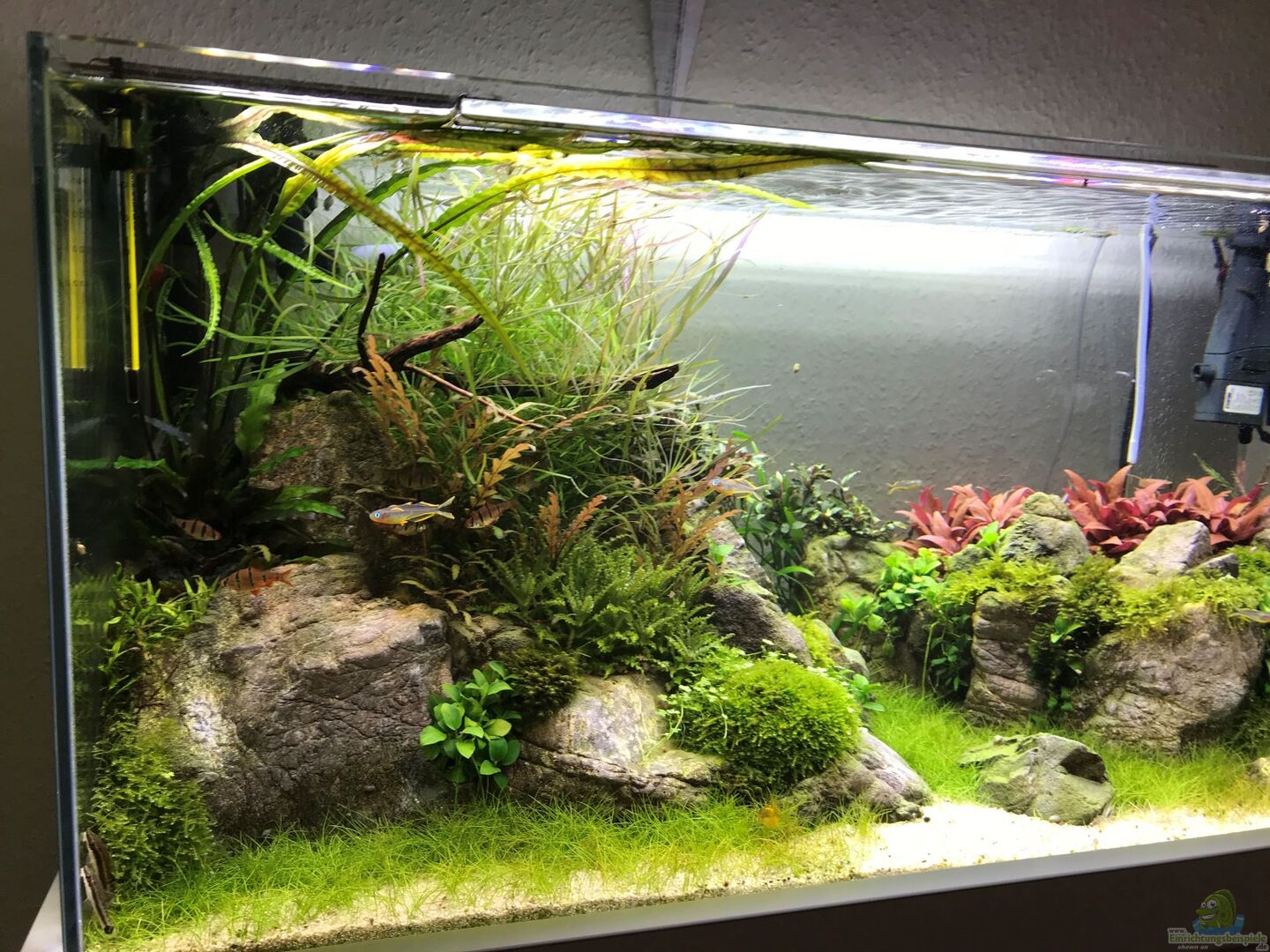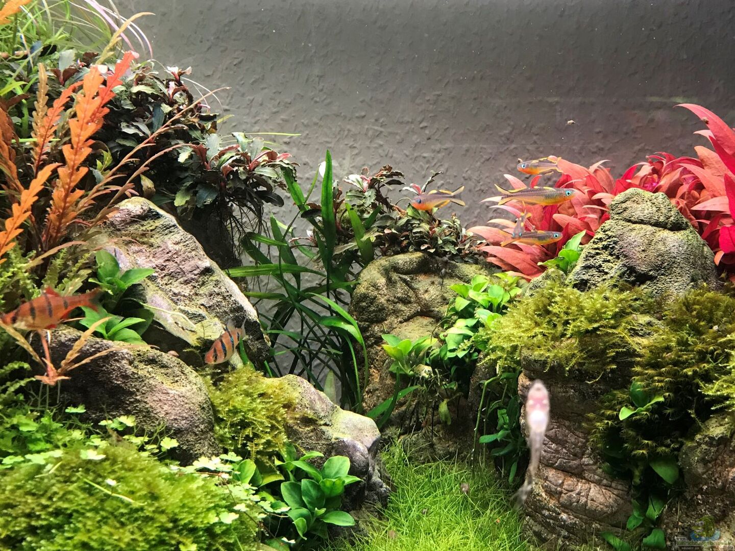 ein auf den ersten Blick schönes Aquascape hast du da erstellt. Die Anordnung der Steine mit seinem Aufbau gefallen mir sehr gut. Die Pflanzenwahl hast du sehr schön passend ausgesucht und angeordnet. Schöne Eyecatcher zum Teil mit den roten Akzenten. Freue mich schon über mehr Infos über dein Becken und den Besatz.