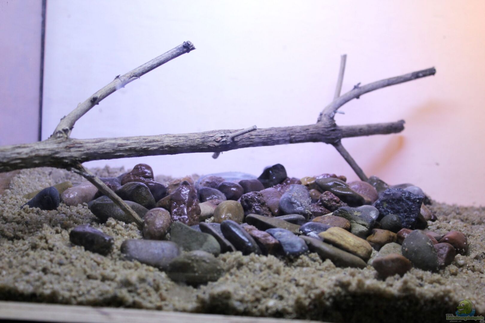 der Sand dient hier hauptsächlich als Sicherungsunterlage für den eingebrachten Stein/Geröllgrund und bei Besatz mit grabenden Schnecken als natürliches Biotop-Medium