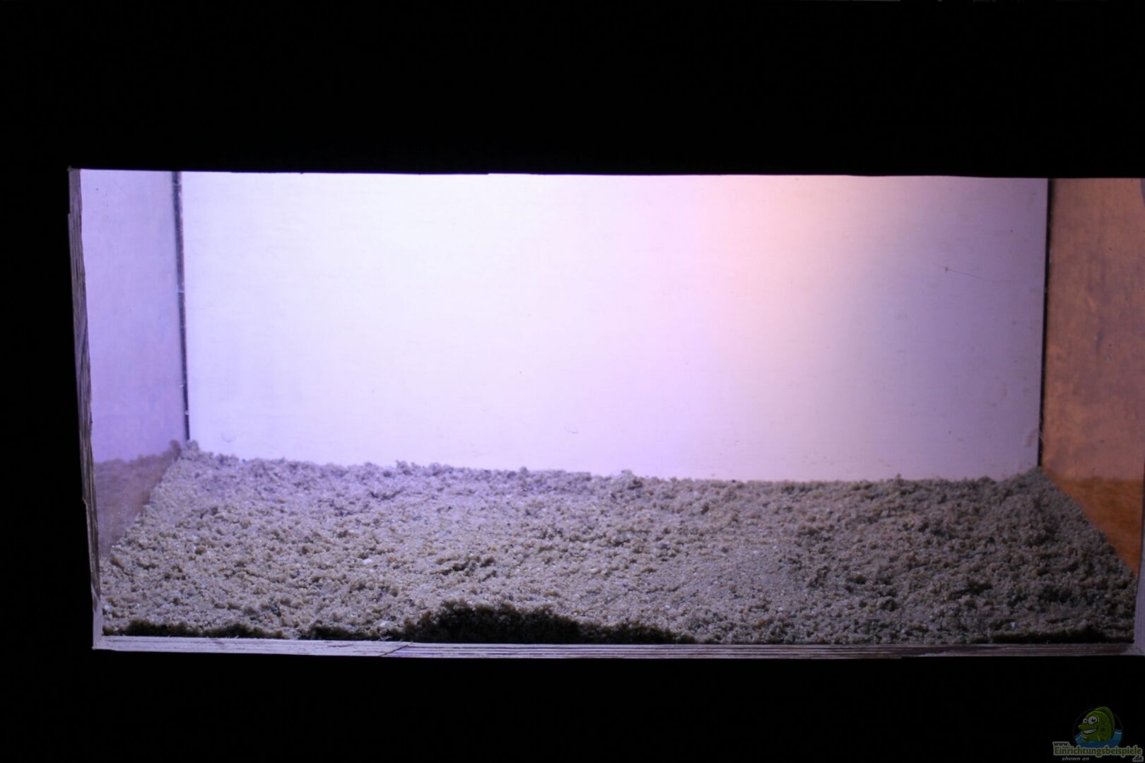Der LED-Strahler bringt noch einmal eine blaue Hintergrundoptik, vor allem für fotografische Zwecke. Zwischen dem Strahler und der Beckenscheibe liegt eine Milchglasscheibe, welche das Licht gedämpft erscheinen lässt.(siehe weiter unten im Text zu weiterer Technik)