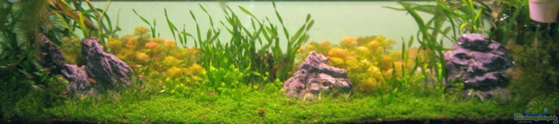 Nov. 09 - Cabomba furcata wurde aus dem Bestand entfernt. Der Test mit Myriophyllum tuberculatum führte nicht zur erwünschten Wuchsform, was wahrscheinlich an einem zu hohen pH-Wert und Gesamthärte des Wassers liegt. Deshalb wurde Myriophyllum tuberculatum ebenfalls entfernt.