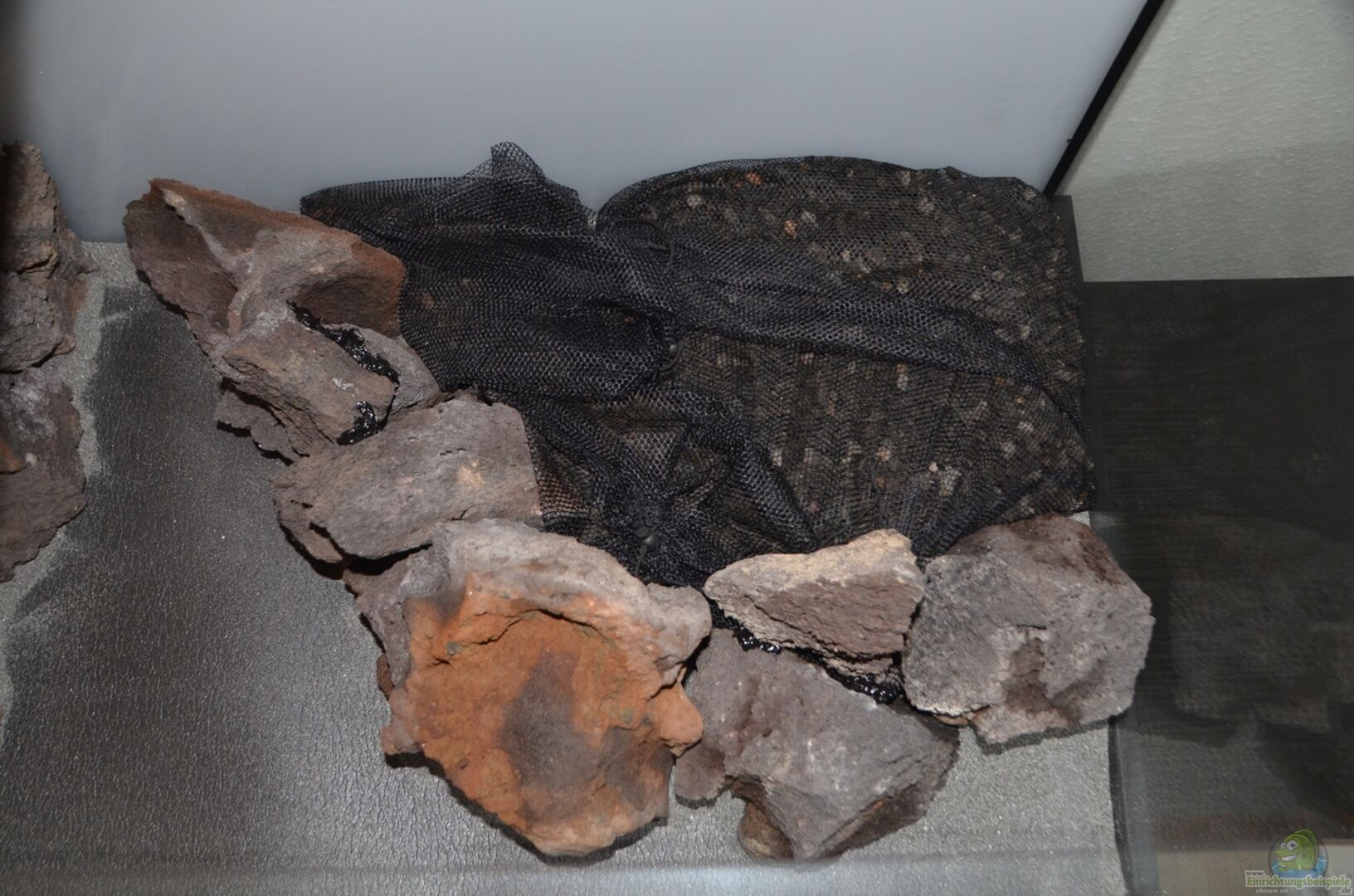 Schwarze Glasschutzmatte im und unter dem Aquarium