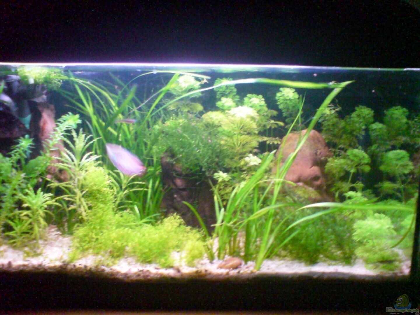 Ich habe Schwimmpflanzen in meinem Becken (Riccia fluitans schwimmte mitlerweile) unter denen sich meine Zwergfadenfische unterstellen können. Der Wei?e Sand geht nur bis zur hälfte des Becken, also so hell ist mein Becken (bei 15 Watt) nicht und wo die Bepflanzung spärlich sein soll ist mir nicht ganz klar?!