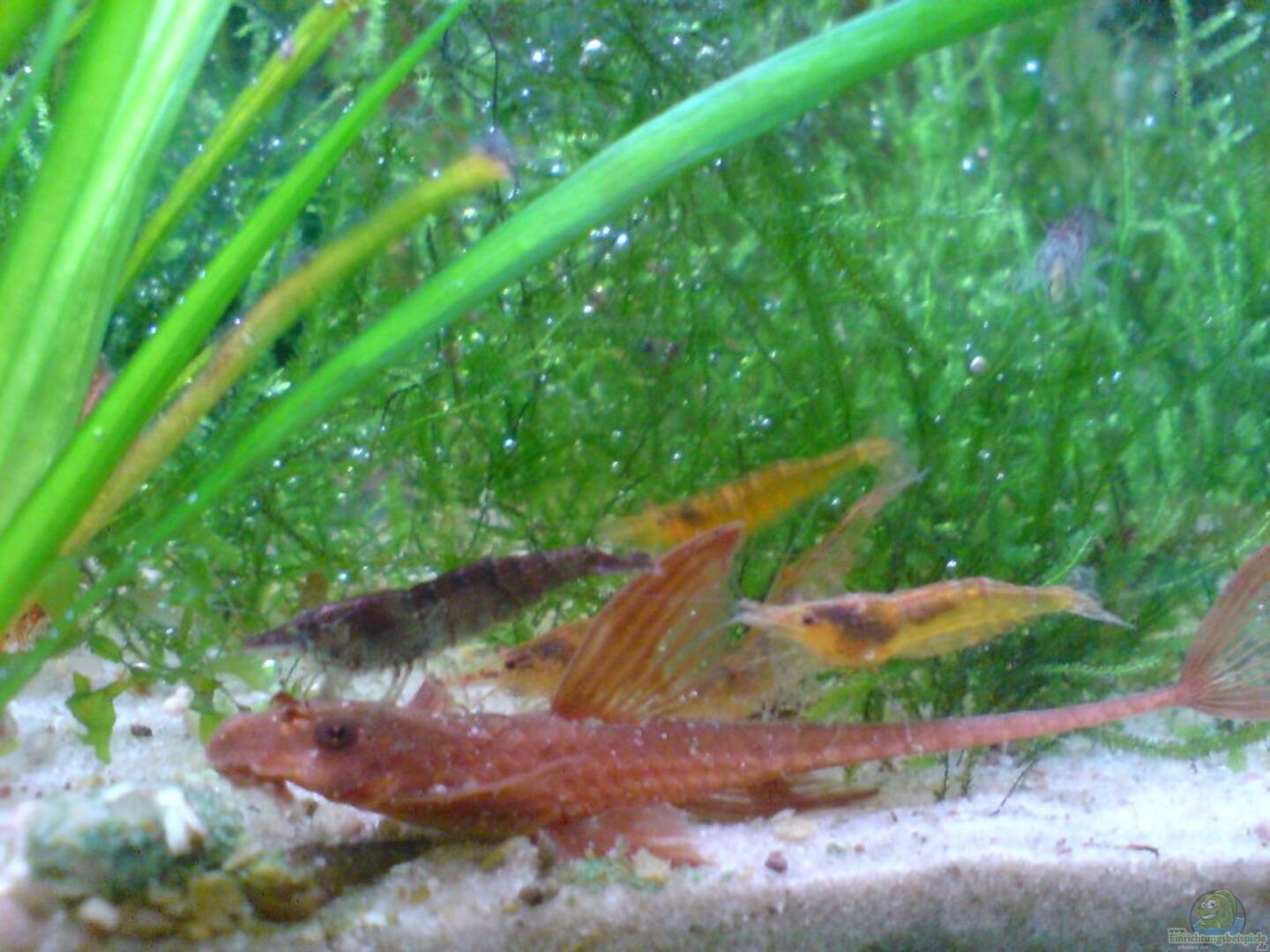Eiin Blatt liegt übrigends im Aquarium, das die Garnelen flei?ig anknabern.