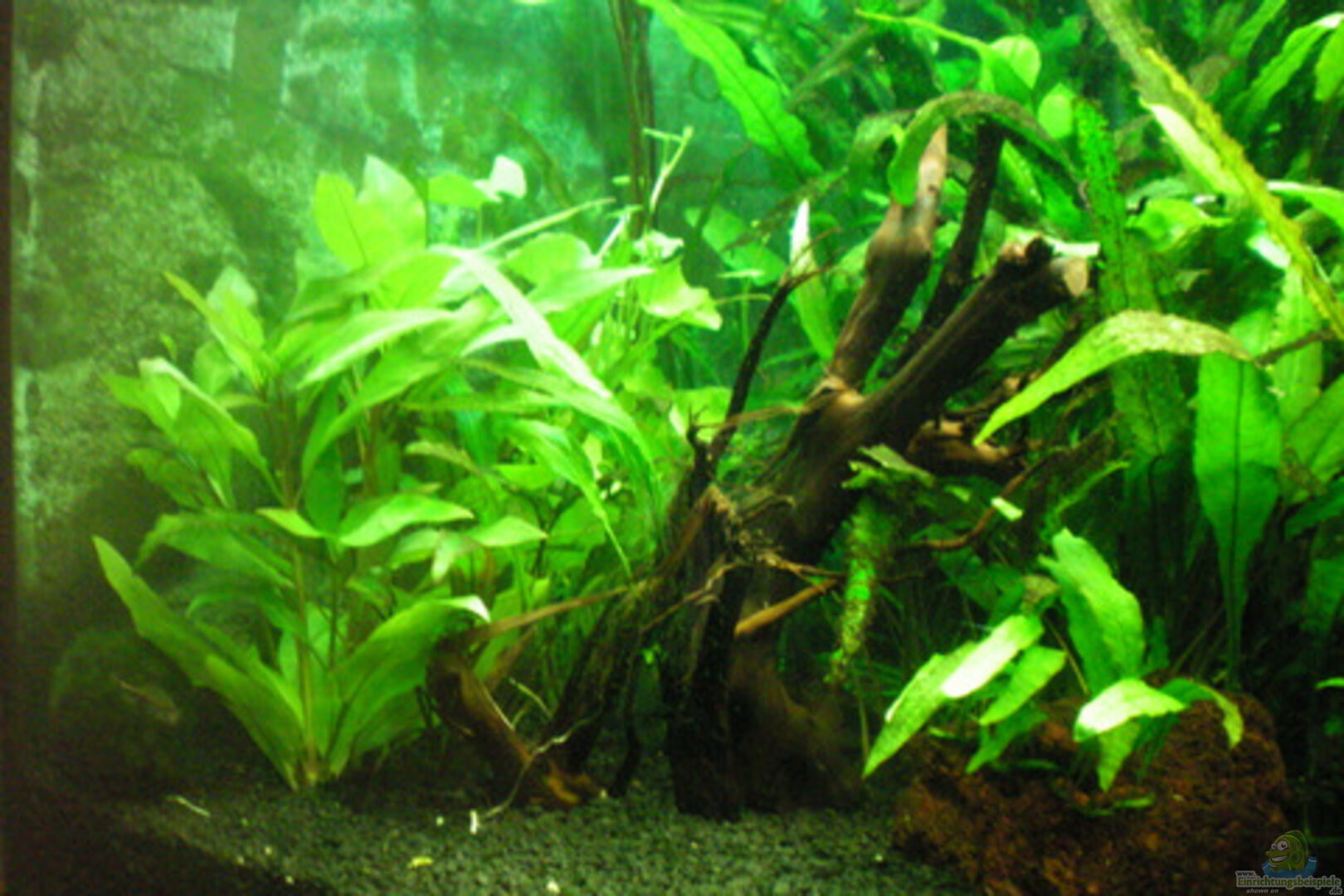 Das Becken ist optisch sehr schön geworden. Mir persönlich es es etwas zu exakt strukturiert. Die Grosse Wurzel in der Mitte, links und rechts je zwei Vallisnerien sind mir zu regelmässig.