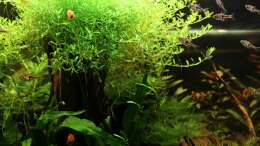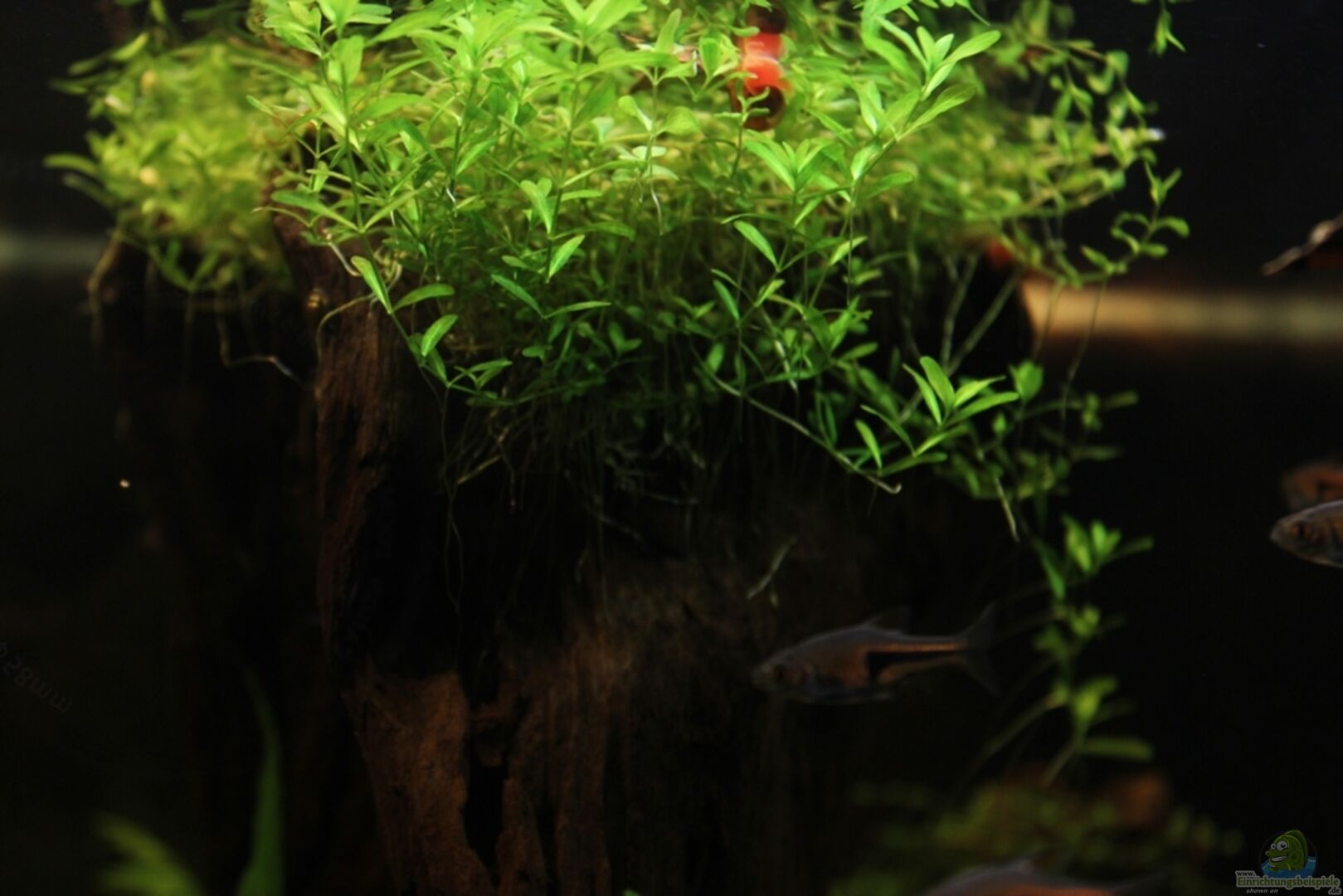 ??ber Wasser hat sich ein dichtes Polster gebildet, aber es wachsen auch Triebe ins Wasser hinein und auf der Wasseroberfläche entlang. Zwischen deren Wurzeln tummeln sich gerne die Espei, es ist aber auch toll zu sehen, wie einige Wurzeln kriechend an der Wurzel hinunterwachsen.