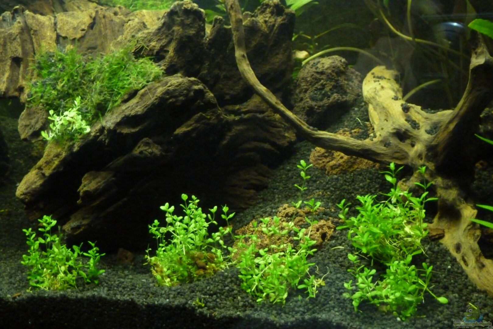 Schaumlava ist sehr leicht und härtet das Wasser nicht auf. Au??erdem können sich auf der porösen Oberfläche Bakterien ansiedeln. Indem ich Steine in den Bodengrund eingearbeitet habe, wollte ich au??erdem verhindern, dass der Kies nach vorne rutscht.