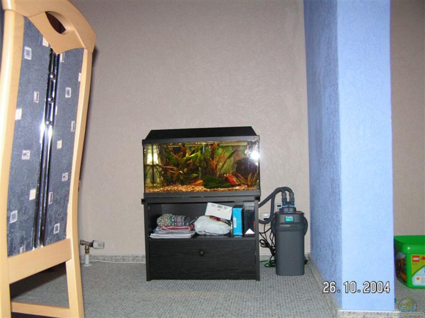 Au??enfilter Fluval 204, reduzierter Durchfluss auf ca. 120l/h (Nitrit- und Nitratabbau), gefiltert wird über Dennerle Turbo-FiterChips, Turbo-FilterPerlen und Hagen Green-X