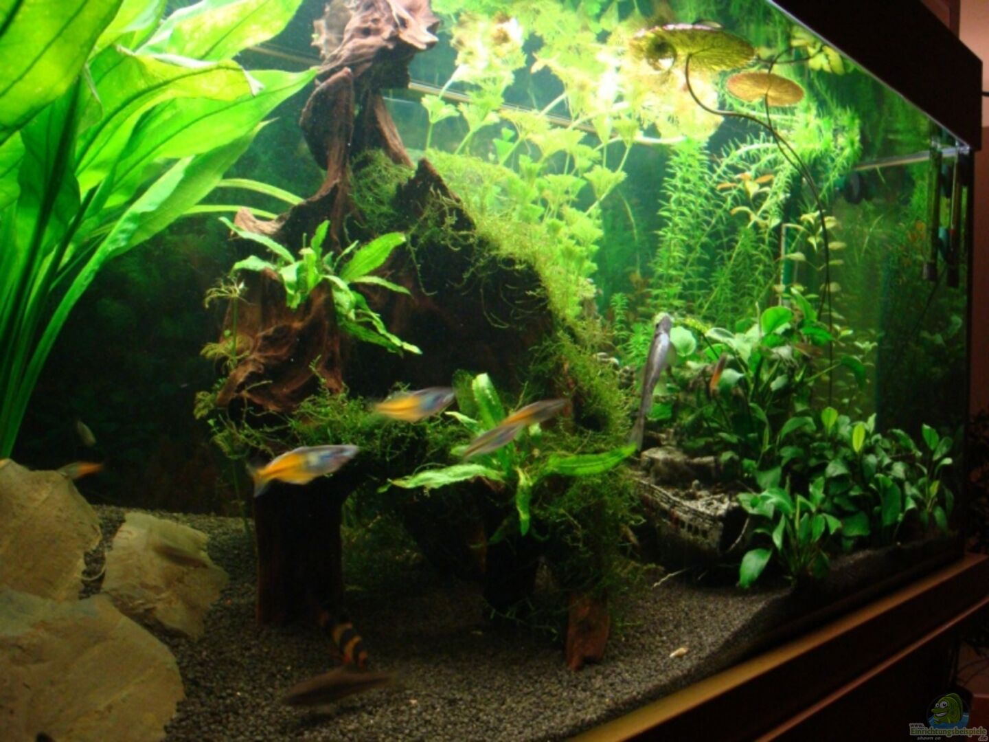 Im rechten Teil: Hinterer Bereich cabomba piauhyensis (Piauhy-Haarnixe), Elodea densa (argentinische Wasserpest), Ludwigia repens (Schwimmende Ludwigie) Vorderer Bereich Mehrere Arten von Anubias. Ua Anubias nana