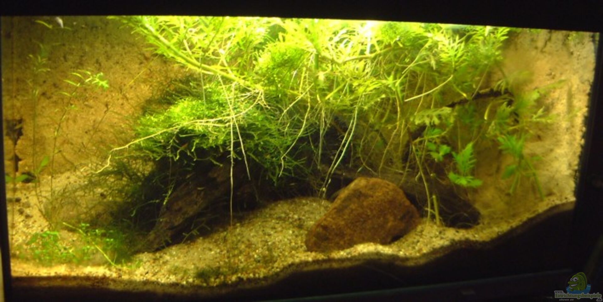na als erstes fällt diese tolle rückwand auf, das wirkt obwohl künstlich absolut natürlich, in der farbgebung harmoniert das richtig schön mit dem bodengrund.als wärs eins. algenbälle, die ja immer irgendwie künstlich wirken, würden das schöne bild auch kaputt machen, dieses pflanzenwirrwar da in der mitte sieht doch ganz ordentlich aus.Sehr schöne Detailfotos - man glaubt gar nicht wie viele nette ecken es in so nem kleinem becken geben kann ;-)