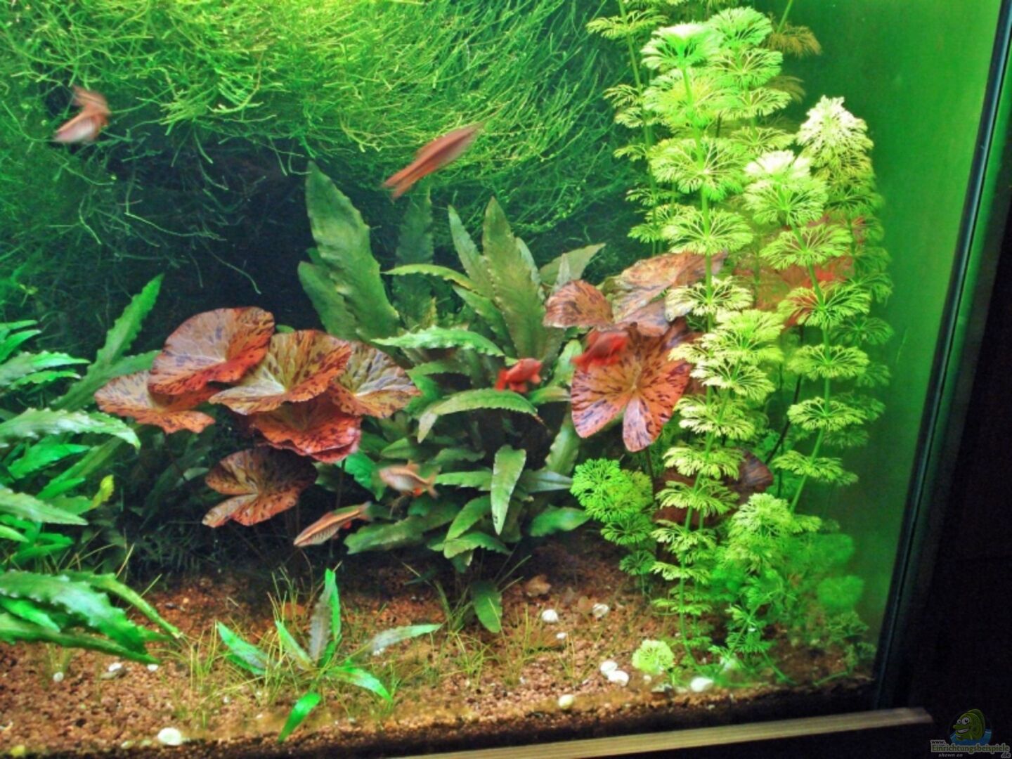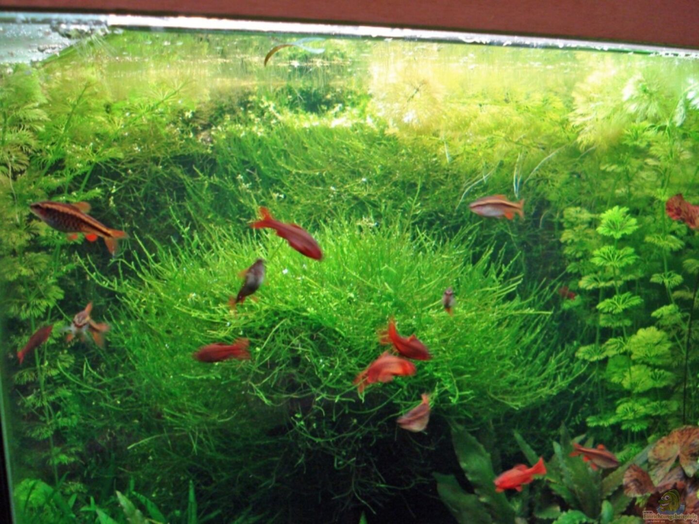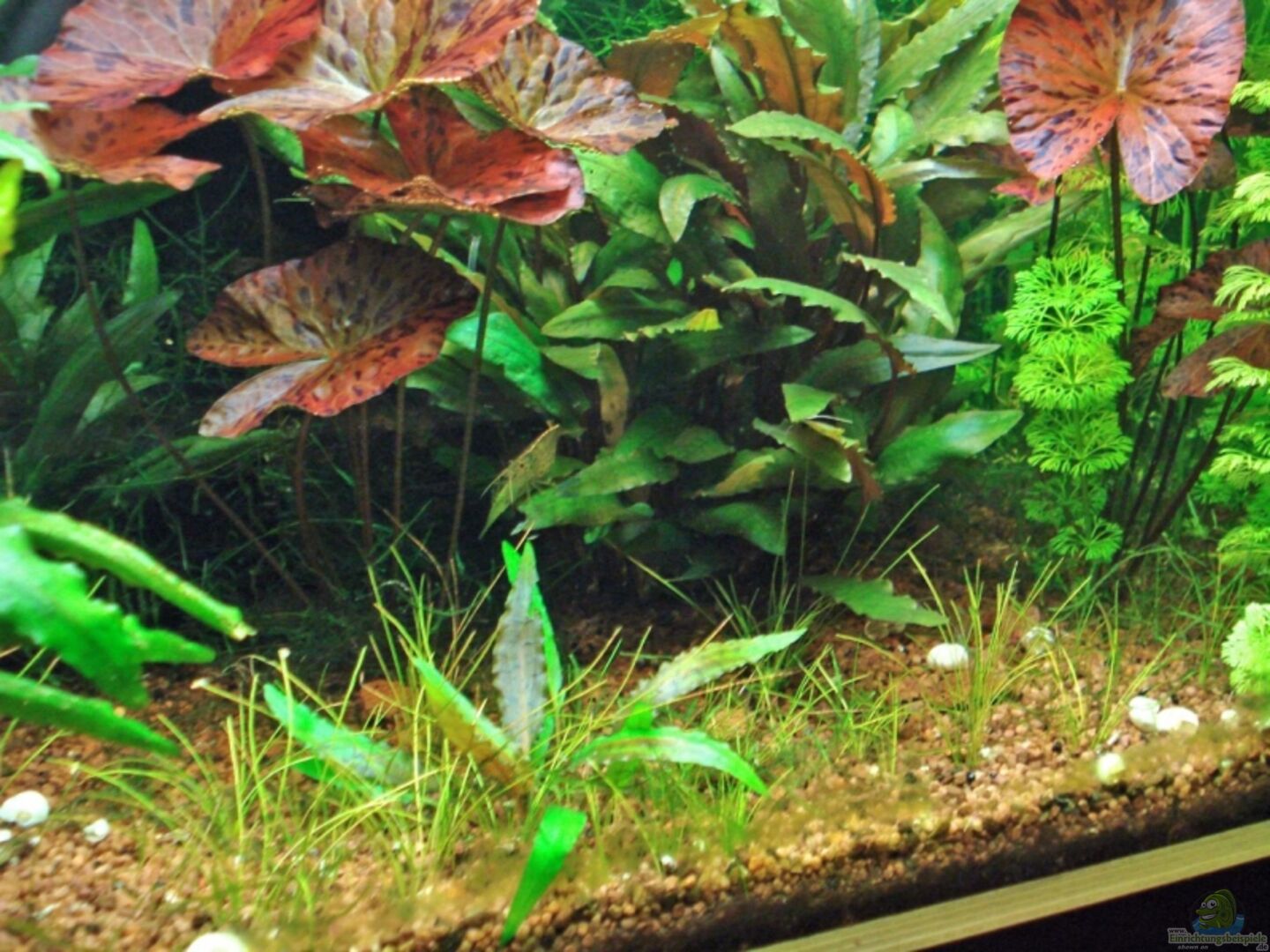 Sehr lustiges Besatz (P. Titteya). Habe ich auch.:-) Auch Bodengruend finde ich Klasse und denke dass ich den selben Bodengrund im AQ mit dem Garnelen habe. Auch Pflanzen geffallen mir besonderes Moose und N. Lotus.