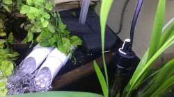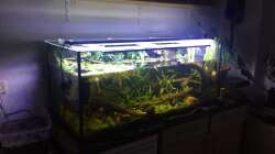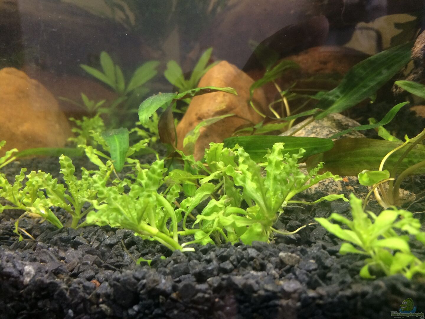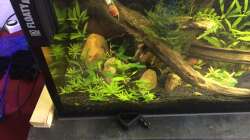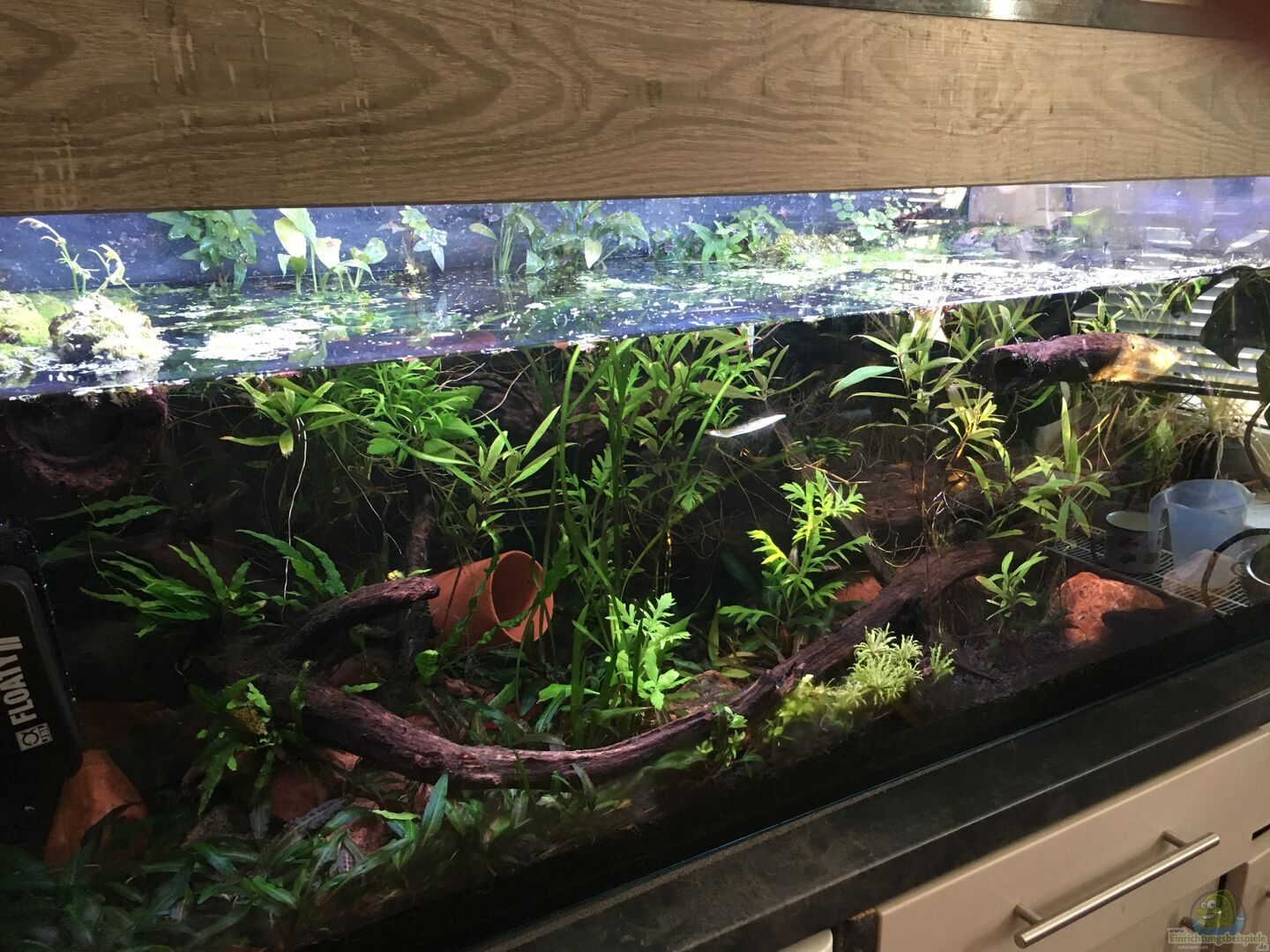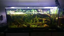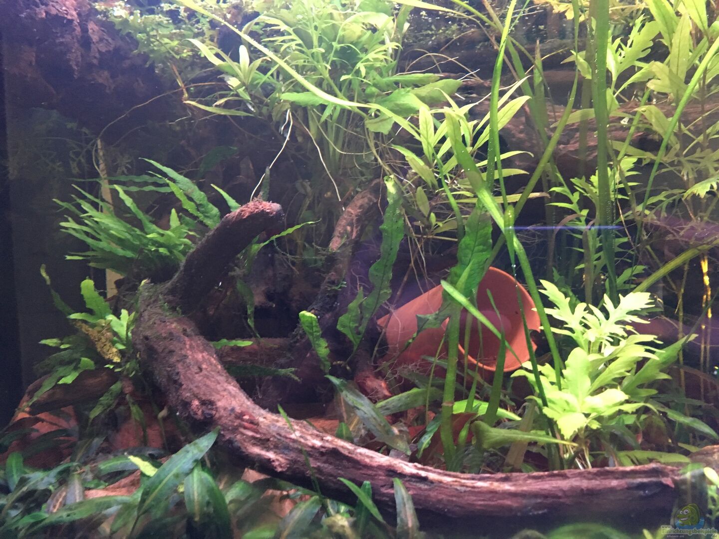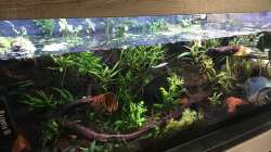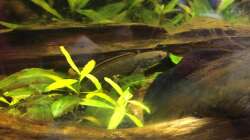 Es entwickelt sich alles gut. Die Pflanzen machen sich schön. Das Wasser ist ziemlich gelb vom Holz. Ich freu mich schon, wenn das in einigen Monaten überstanden ist. Ebenso habe ich viel fusselige Algen, aber ich denke das wird sich alles noch einregulieren, wenn das Becken in Balance ist und das ??kosystem steht. zum Glück gibt es ja Schaschlikstäbchen. Die Bakterienrasen am Holz sind jedenfalls schonmal passé.