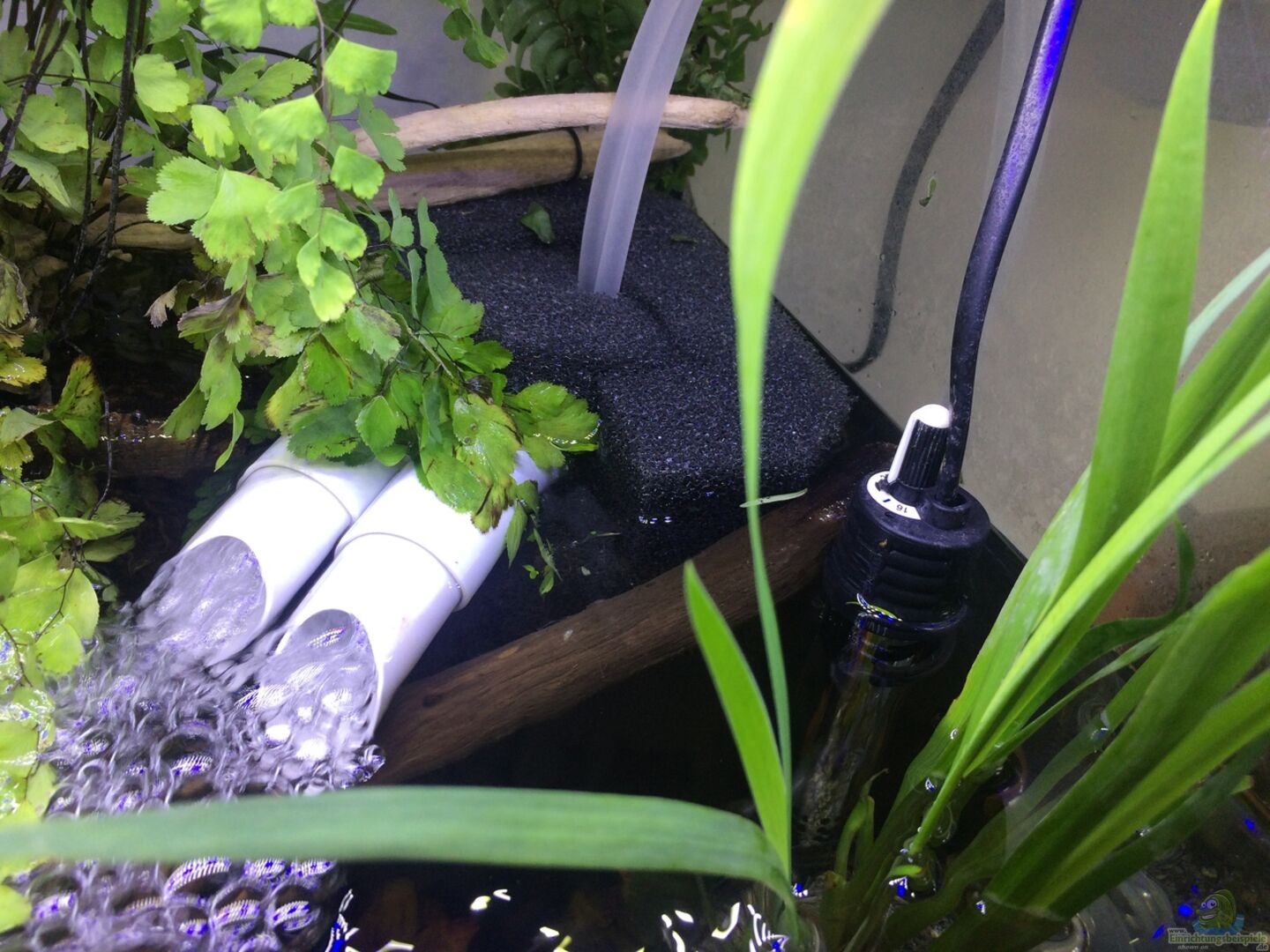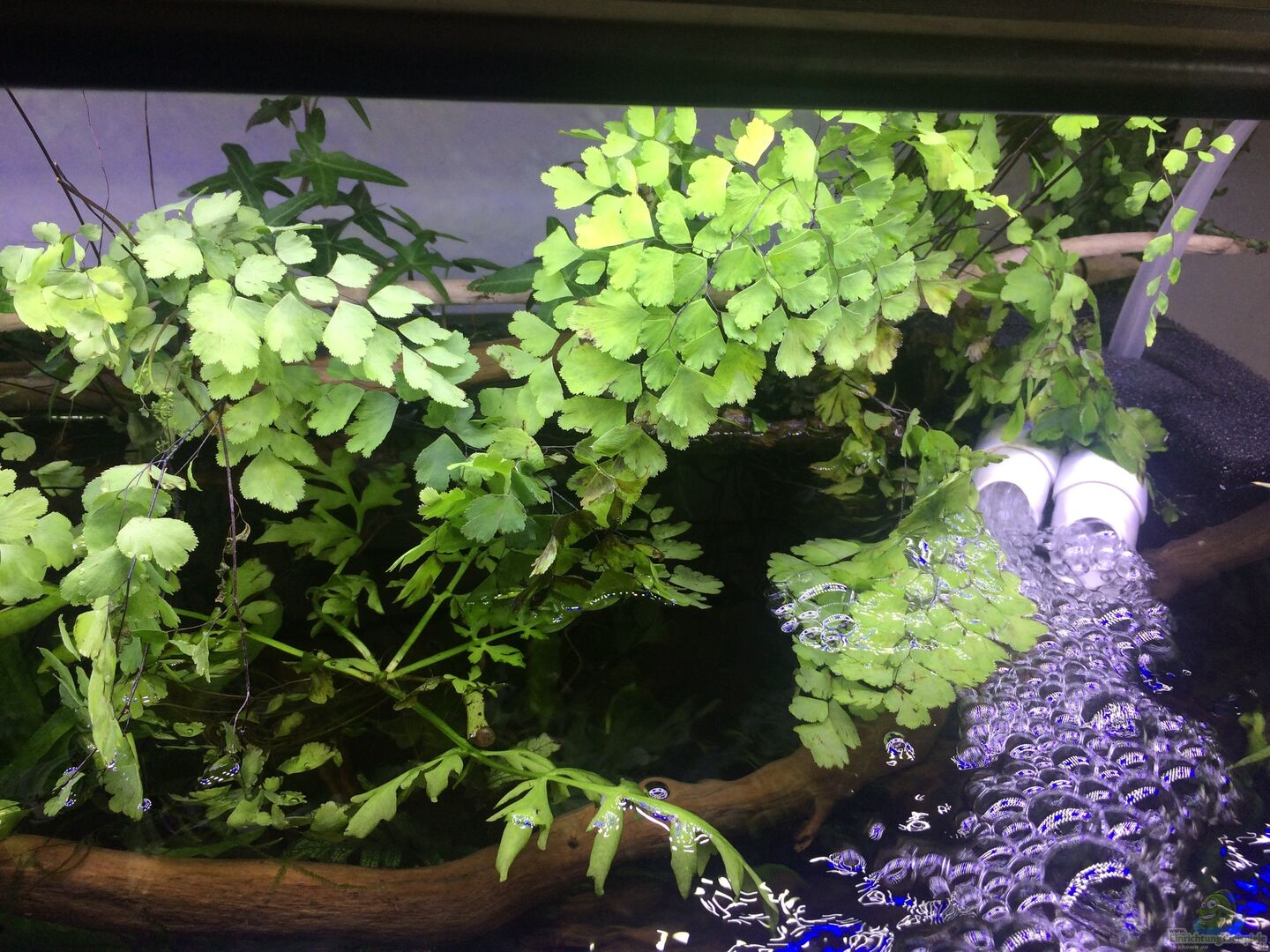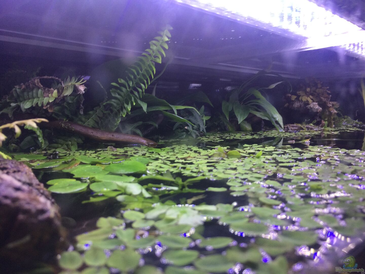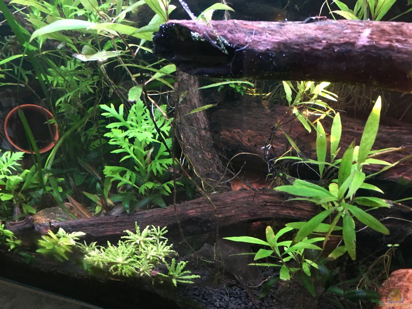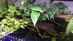 Das Aquarium hat einen emersen Teil, der im Stil eines Ripariums angelegt wurde