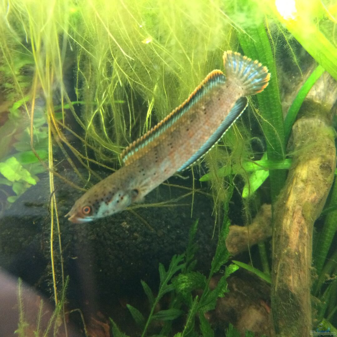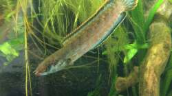 03.05.2017: Die Bakterienblüte beim Holz hat sich beruhigt. Leichte Fadenalgen sind noch hier und da, stören aber nicht. Die Fische sind am 01. Mai eingezogen und machen sich sehr gut. Ich habe sie bei Pascal Antler geholt. Er hat einen unglaublichen Fischkeller und ist ein absoluter Experte, was Schlangenkopffische betrifft. In dem einstündigen Gespräch habe ich viel neues erfahren und gelernt. Auch die vielen Arten Channa zu sehen, die er hält war die lange Reise zu ihm wert.
