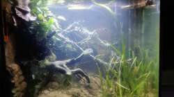 Die Vallisneria wurden beim umgestalten im vorderen rechten Bereich, auf der Sandfläche platziert. Diese speziellere Platzierung von eigentlichen "Hintergrundpflanzen" hat den Hintergrund, dass in einem kleinen Bach/Fluss/Graben die grö??eren submersen Pflanzen im tieferen Teil, also der Flussmitte auf Sandboden wachsen und weniger im direkten Uferbereich. Zudem hat es den Vorteil, das dieser Rückzugsort so auch von zwei Seiten gut einzusehen ist, was bei einem eher versteckt lebenden Besatz auch kein Nachteil ist.