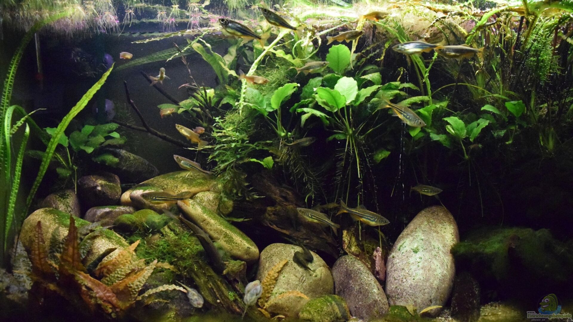 Toller Gesamteindruck ! Die Devario finde ich auch mega interessant, es gibt sie hier zu selten, sie werden ja auch recht gro? mit der Zeit. Die Flossensauger sind eine Pracht, einfach zu schön.