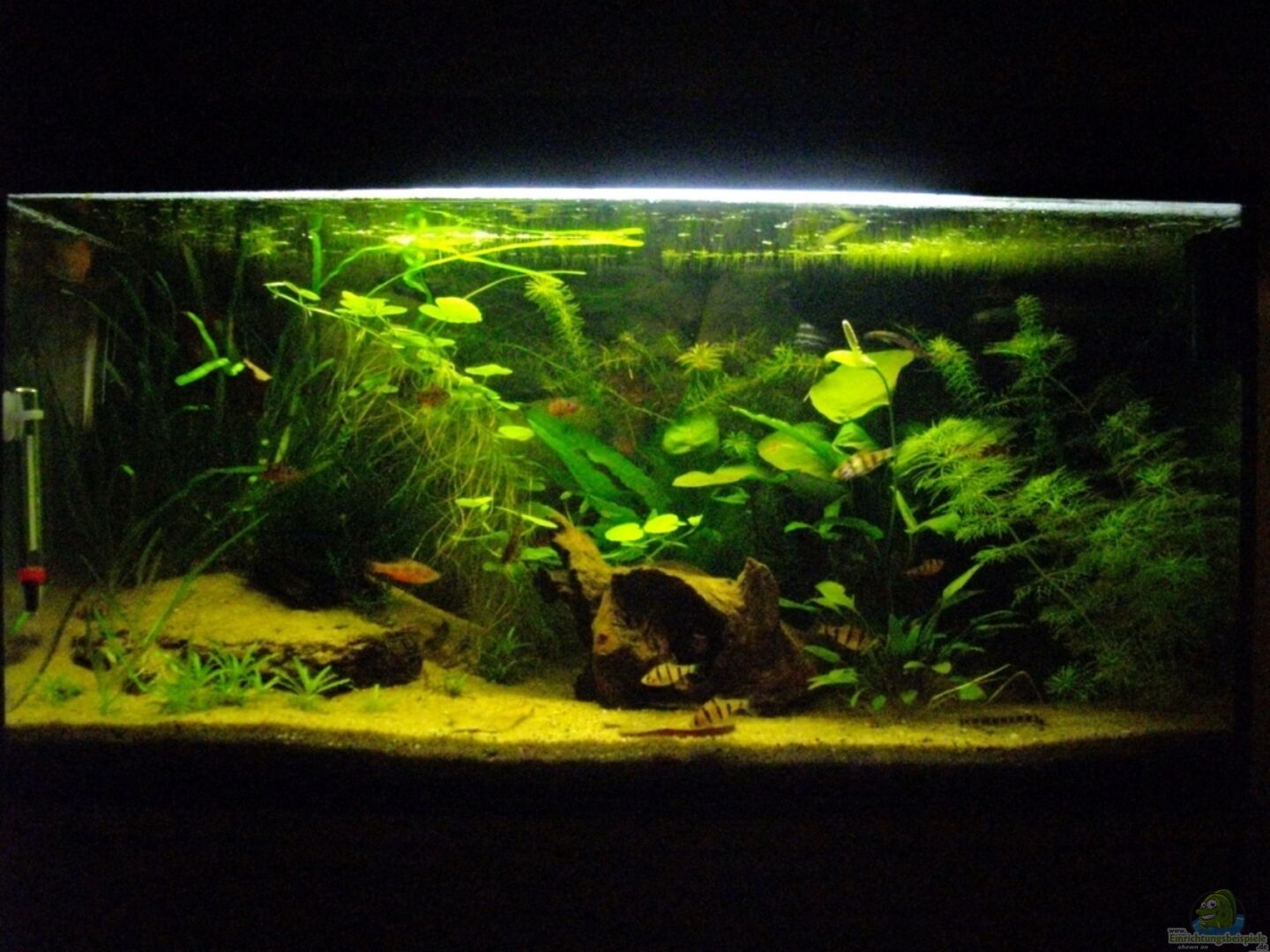 1x Jäger Heizstab 50 W auf 25°C eingestellt, wird mit Eheim-Thermometer überwacht,