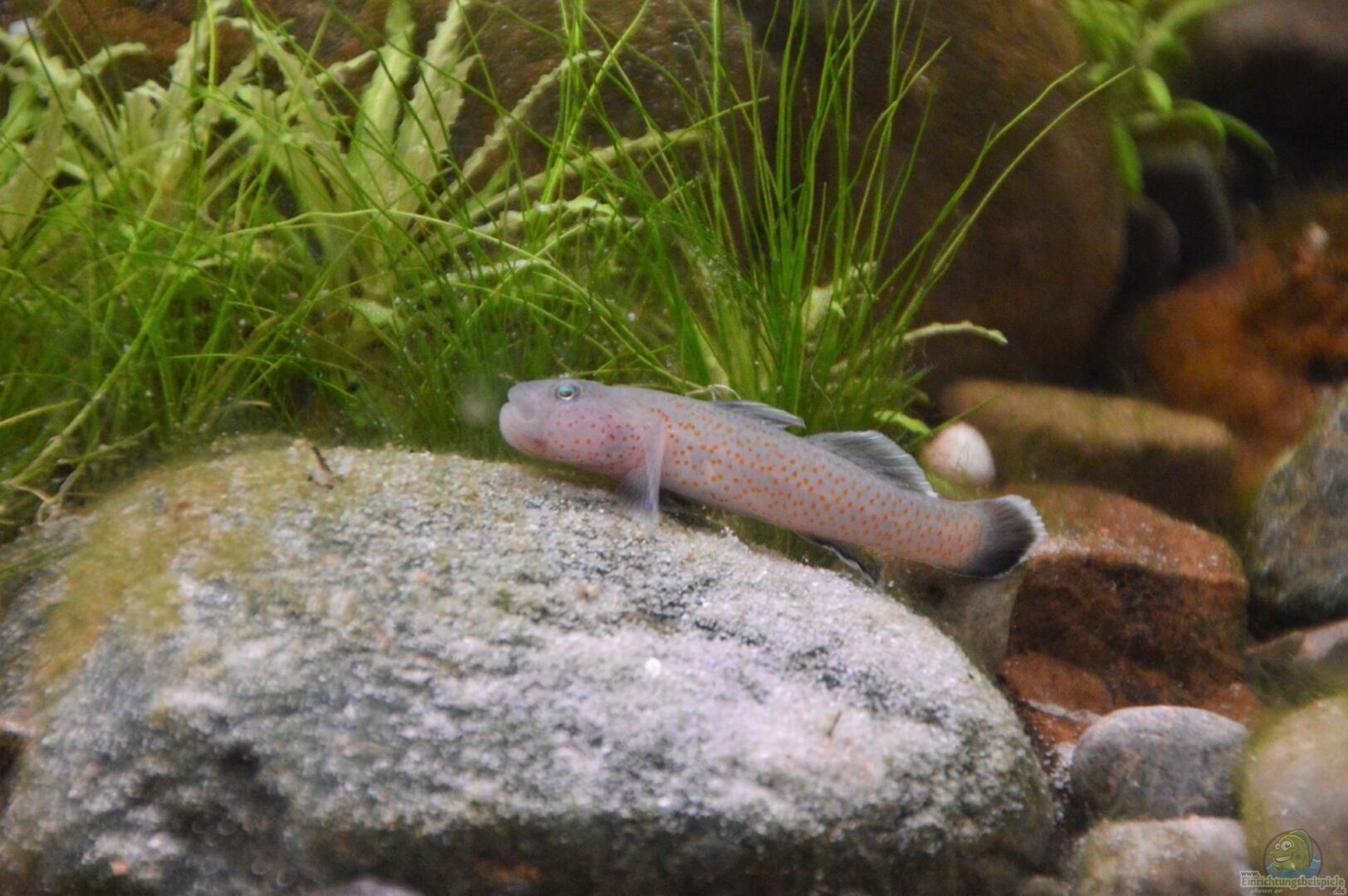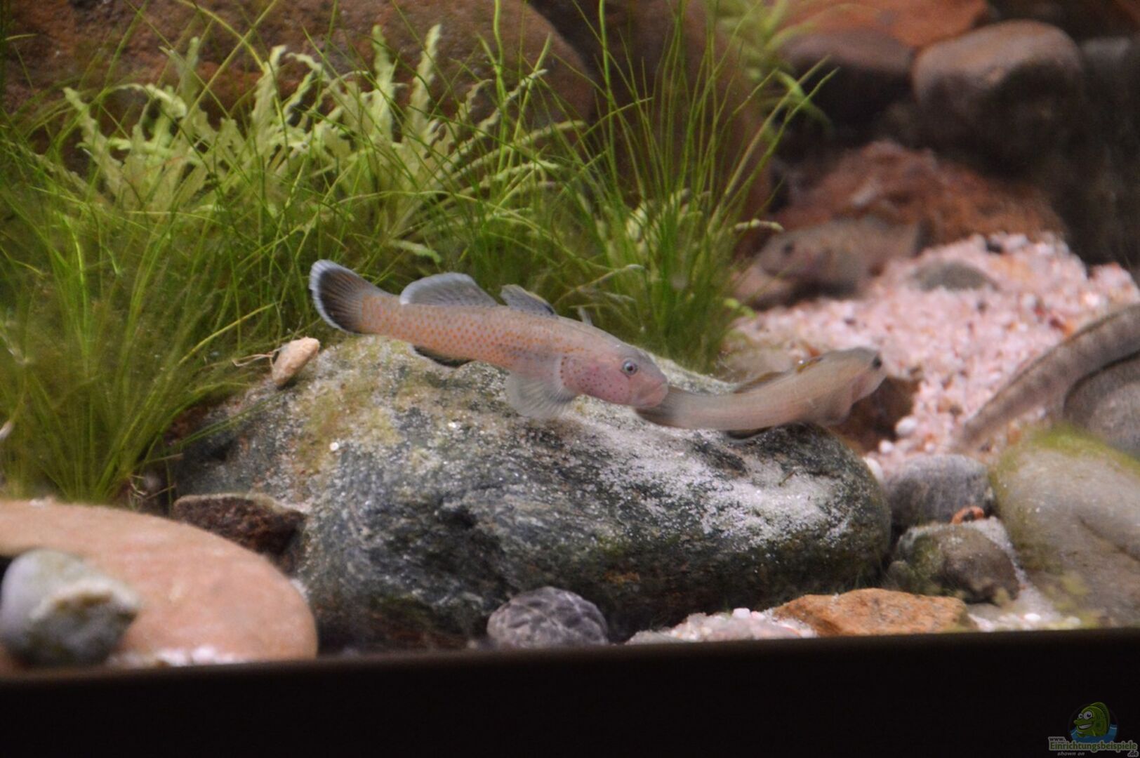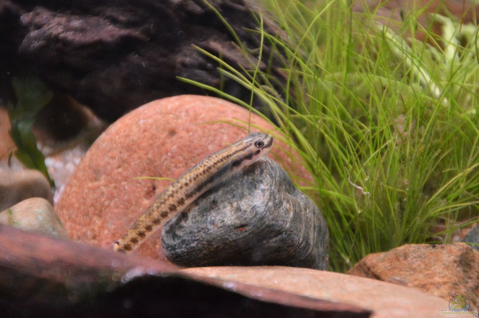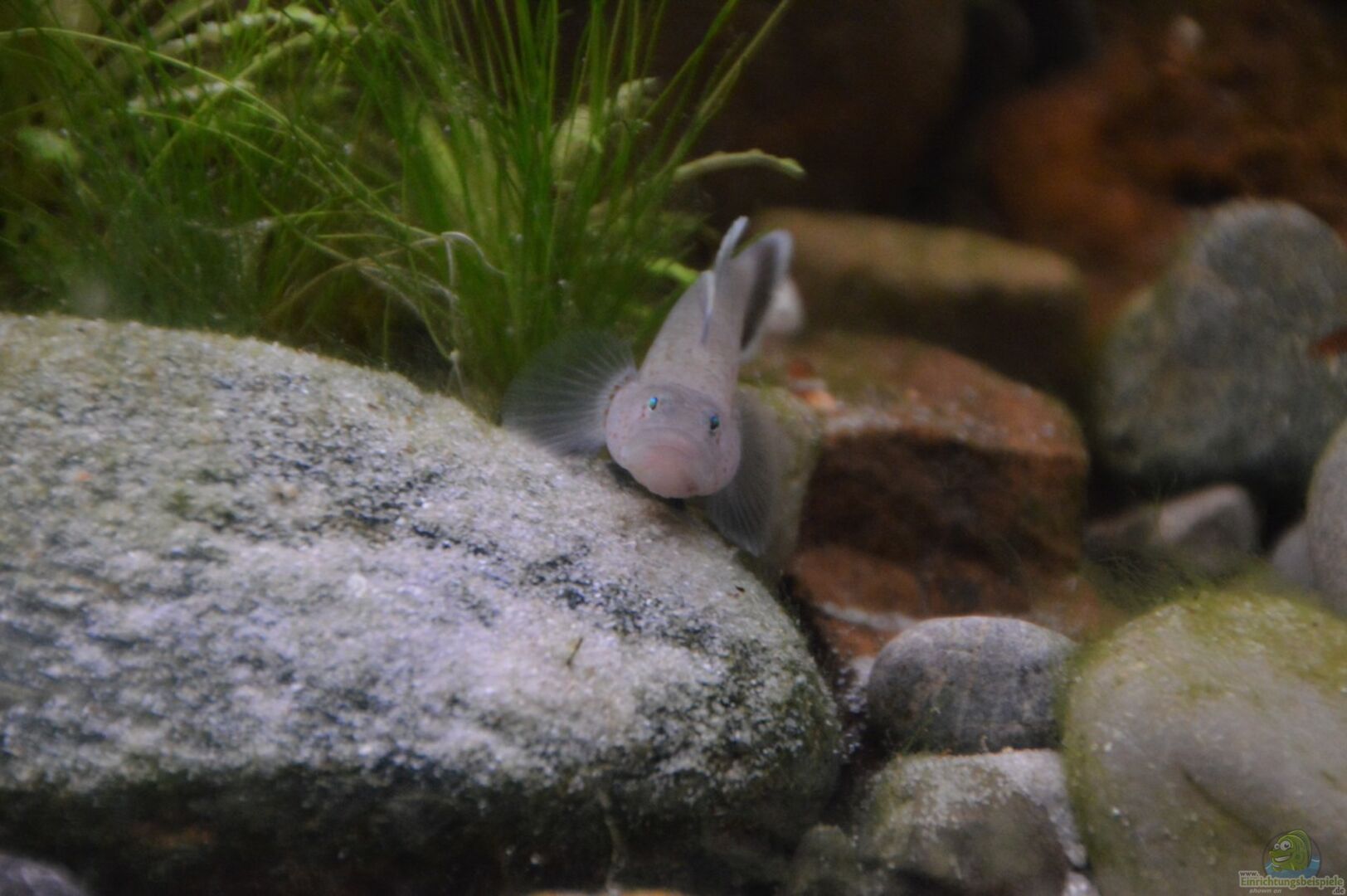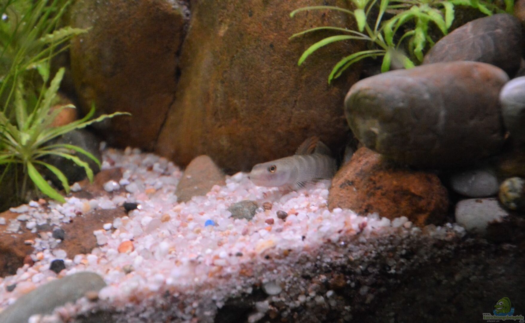 08.02.2017 Es sind mindestens 5 kleine Grundeln im Becken unterwegs und sie sind auch schon etwas gewachsen. Sie sind relativ standorttreu, die meisten verstecken sich um/unter den Wurzeln sowie dem Javafarn darauf; füttern tue ich mit Grindalwürmern.