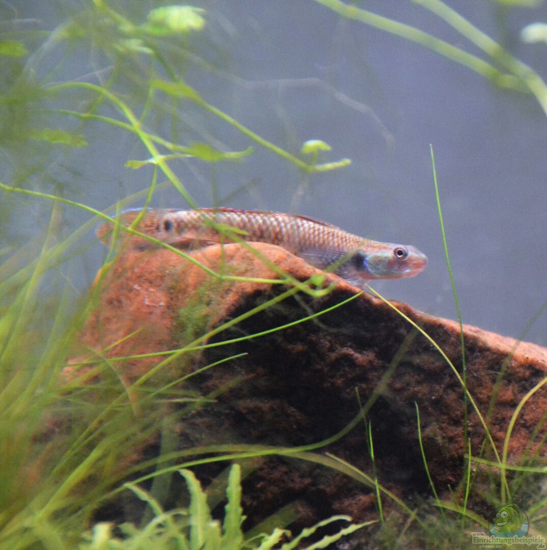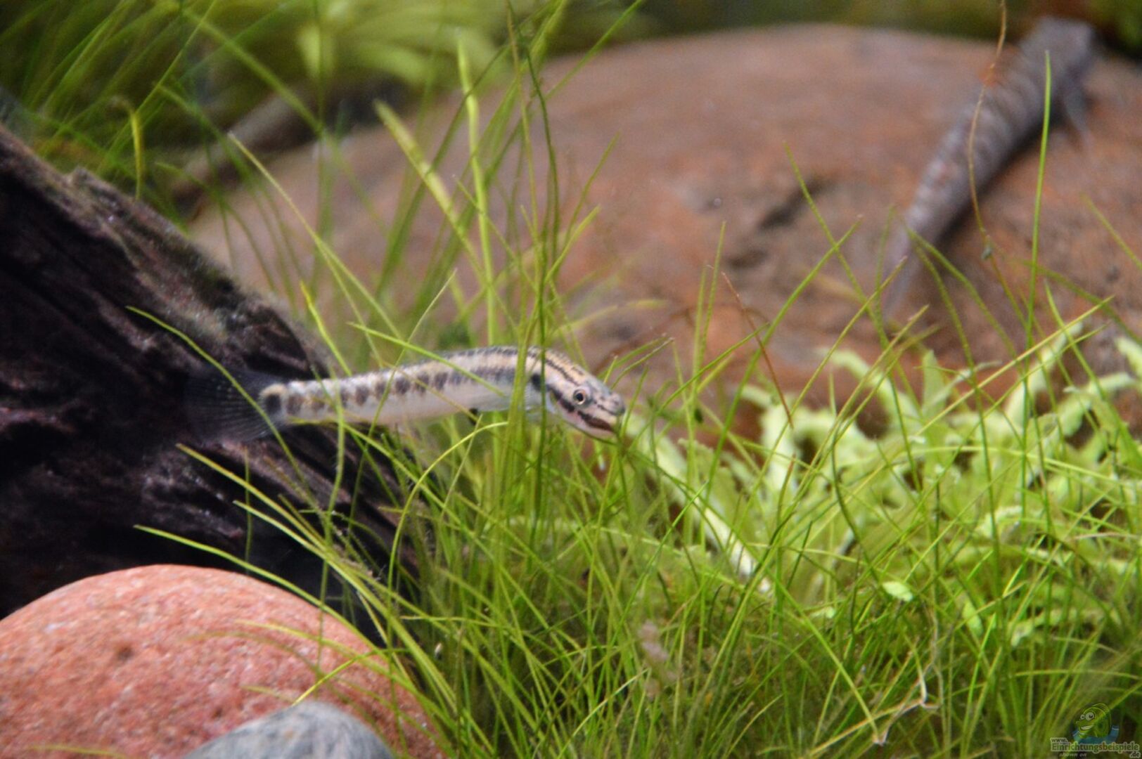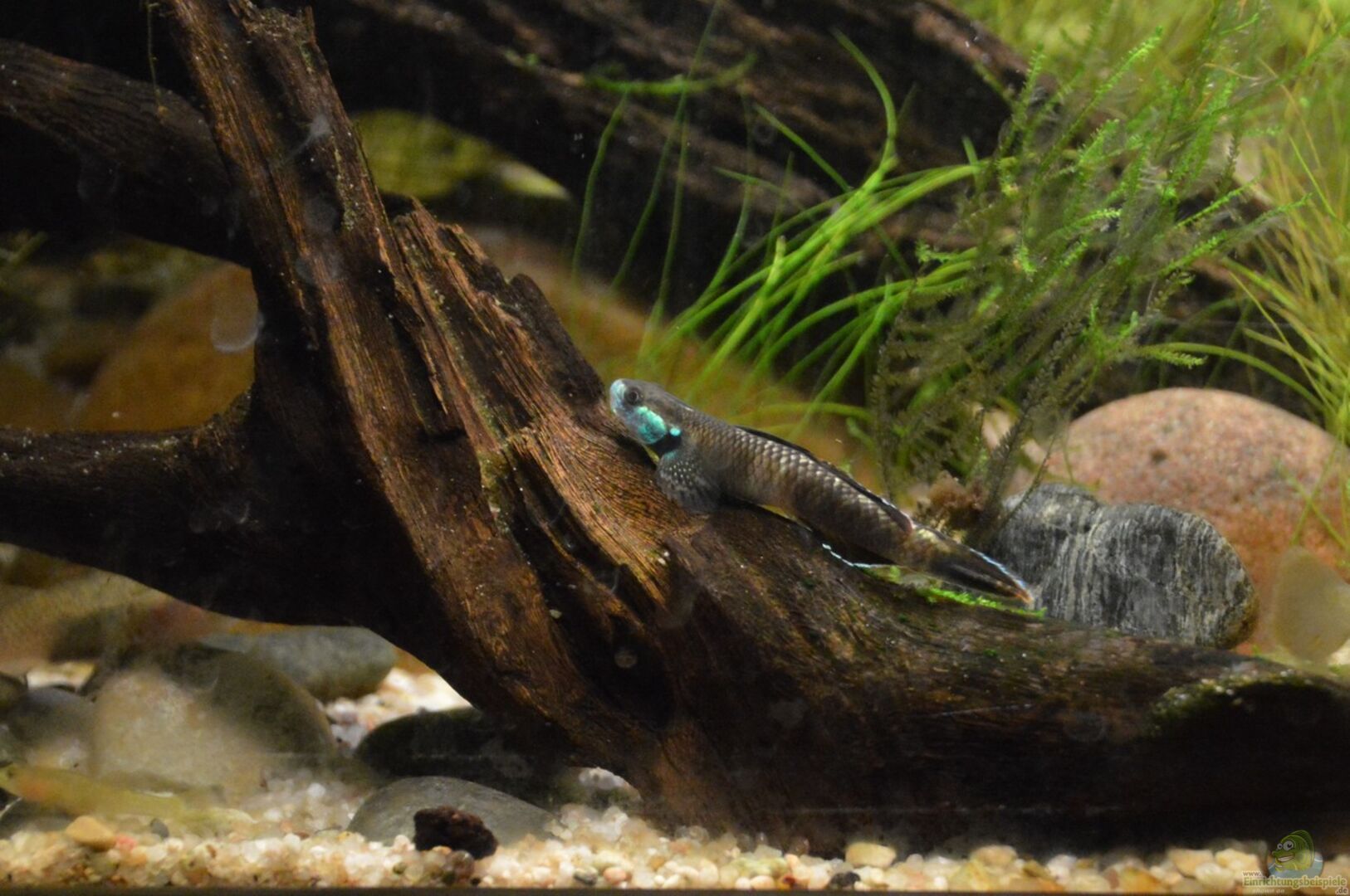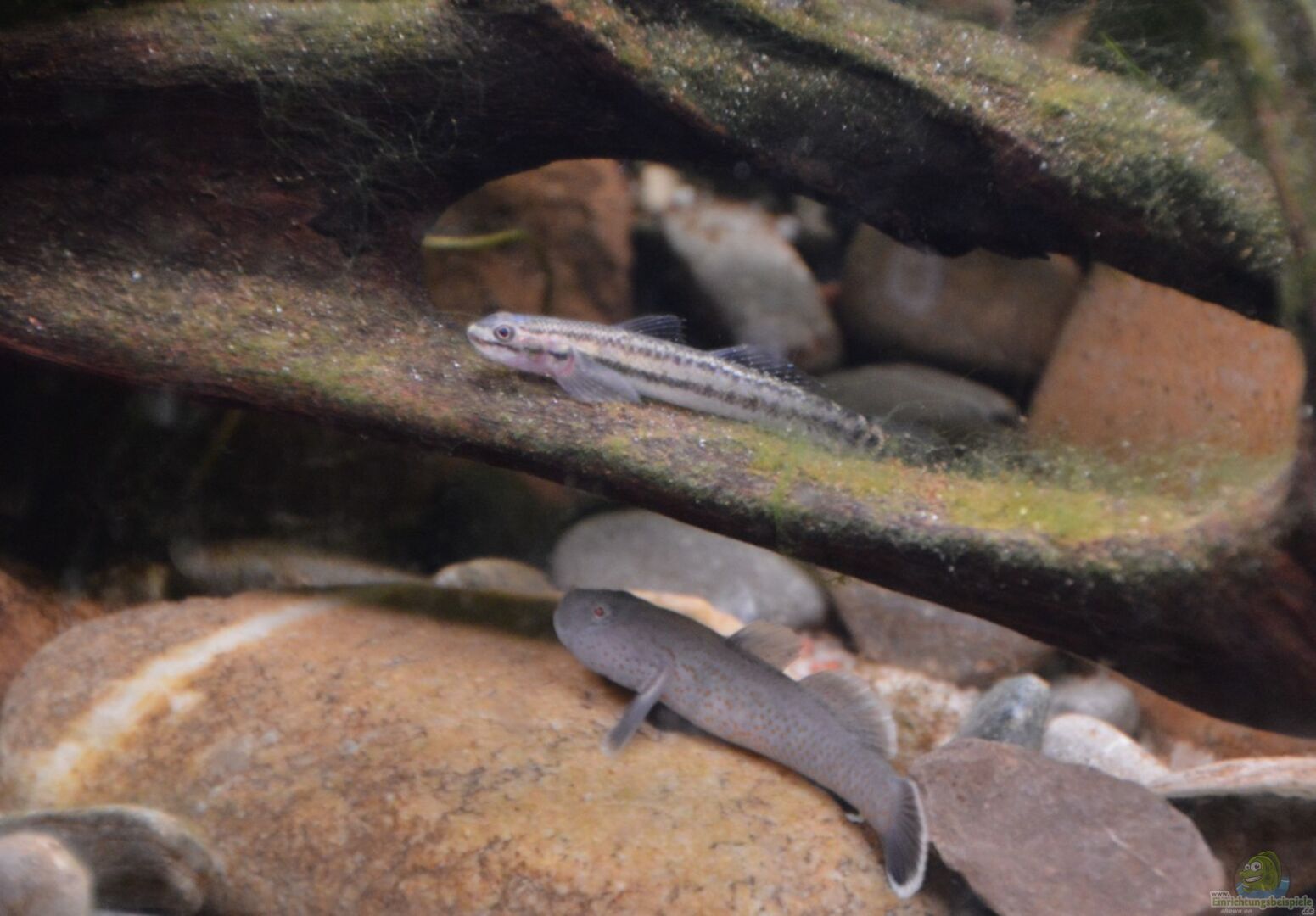 08.02.2017 Es sind mindestens 5 kleine Grundeln im Becken unterwegs und sie sind auch schon etwas gewachsen. Sie sind relativ standorttreu, die meisten verstecken sich um/unter den Wurzeln sowie dem Javafarn darauf; füttern tue ich mit Grindalwürmern.