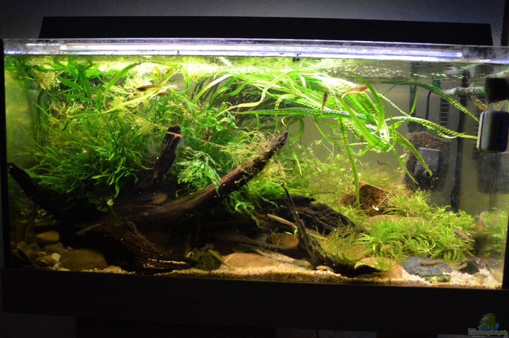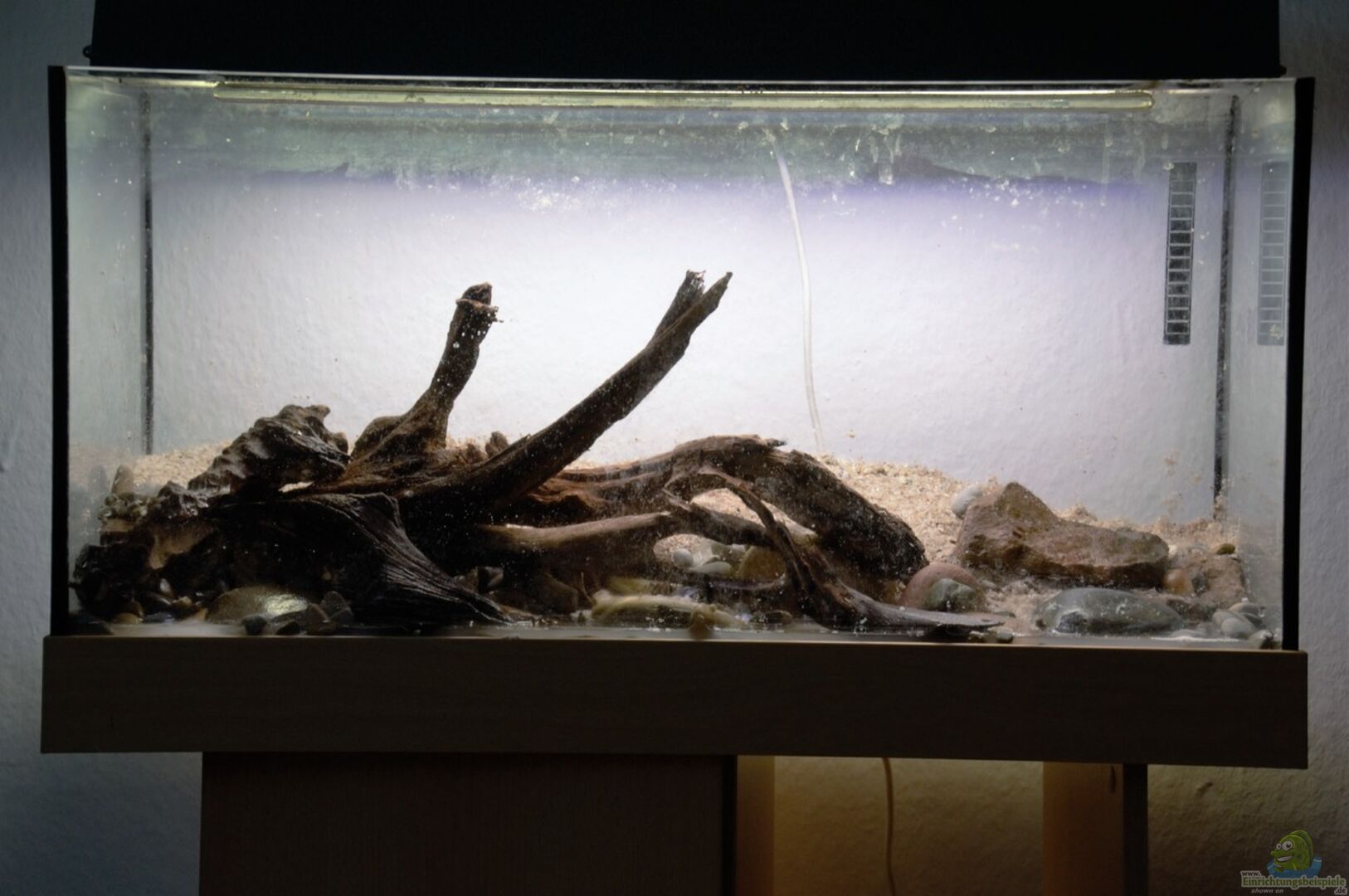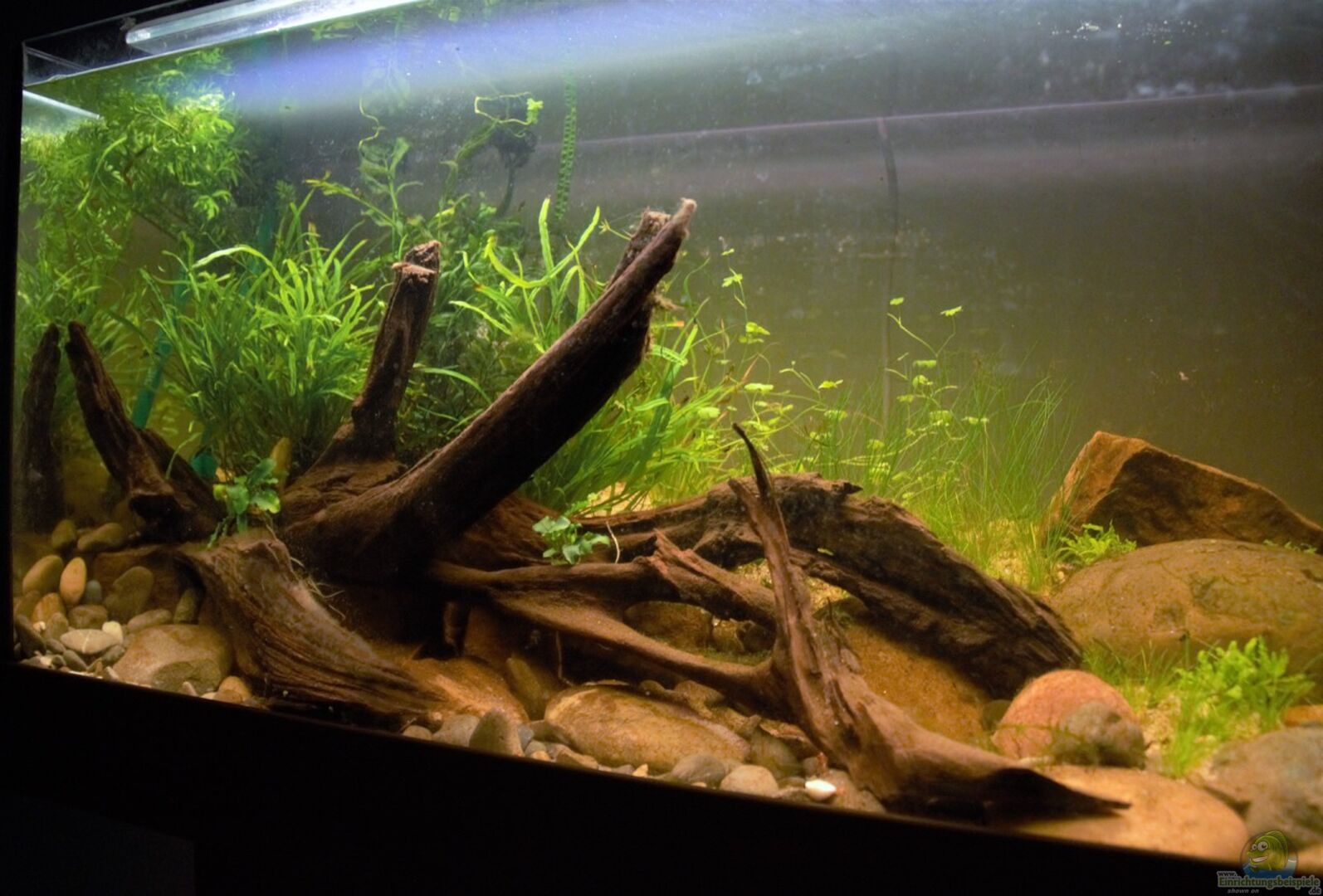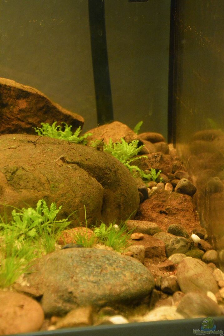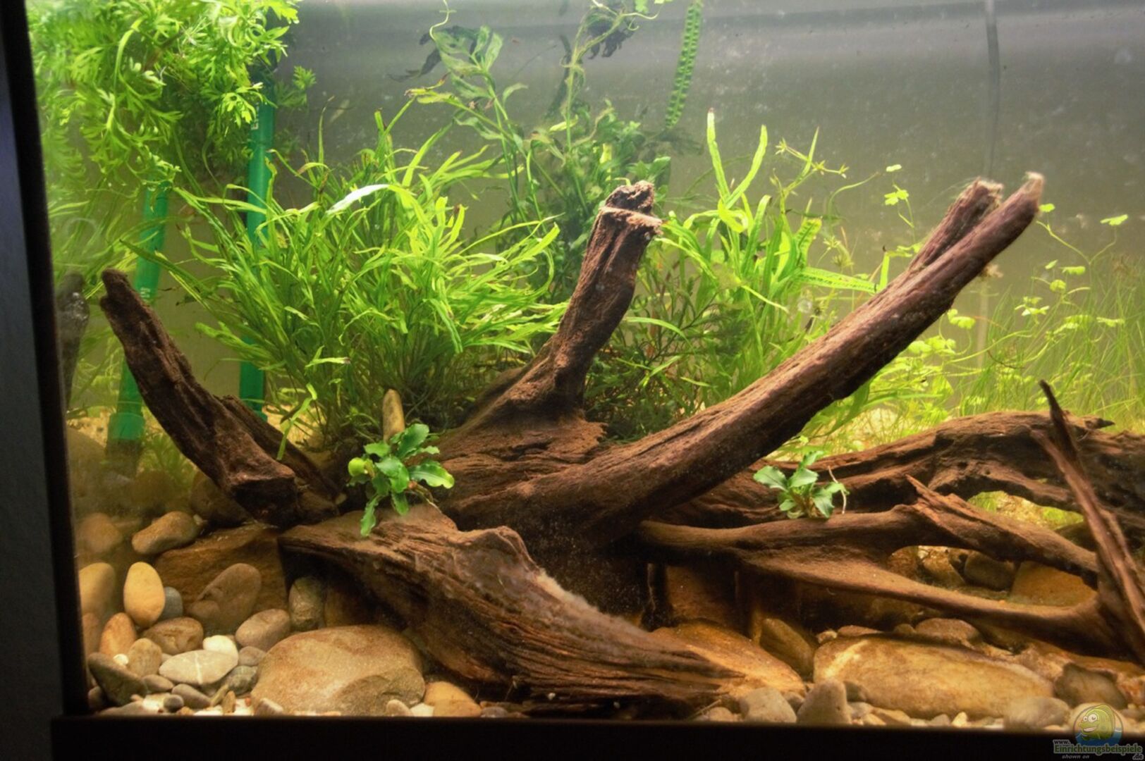 08.02.2017 Es sind mindestens 5 kleine Grundeln im Becken unterwegs und sie sind auch schon etwas gewachsen. Sie sind relativ standorttreu, die meisten verstecken sich um/unter den Wurzeln sowie dem Javafarn darauf; füttern tue ich mit Grindalwürmern.